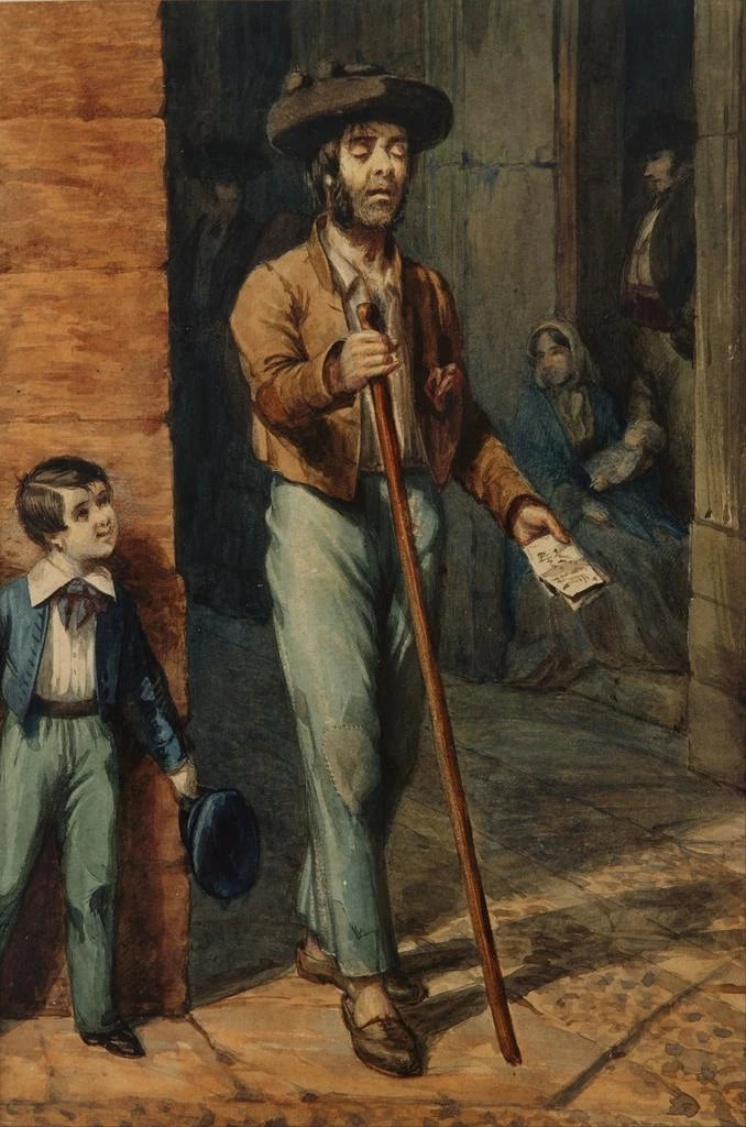 Aveugle populaire à Cadix : en konsttryck av en gripande livsscen
