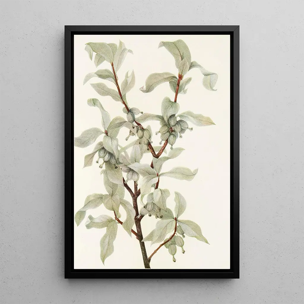 Den konsttryck av Fruit de chalef argenté Elaeagnus commutata fördjupar oss i en värld där formernas ömtålighet och färgernas rikedom vävs samman i harmoni. Mary Vaux Walcott, med sin oöverträffade talang, fångar skönheten hos denna växt och avslöjar silverfärgade nyanser som glittrar i ljuset. Kompositionen, som är både enkel och förfinad, framkallar en atmosfär av lugn och eftertanke. Varje detalj, från bladen till frukterna, är noggrant återgiven, vilket vittnar om den omsorg som ägnas åt naturen. Detta konsttryck, en sann hyllning till floran, inbjuder till en visuell utforskning som förtrollar sinnet.