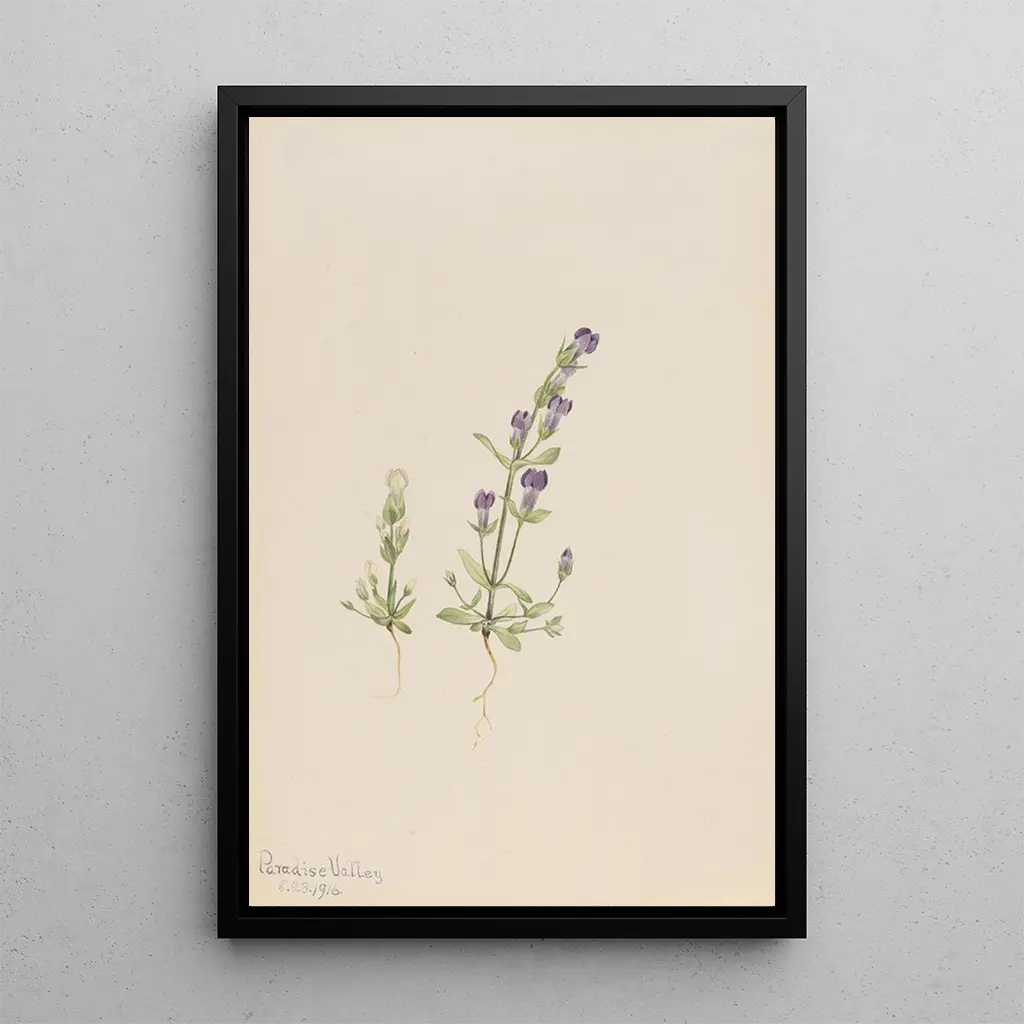 Gentiana propingua : en hyllning till den naturliga skönheten Den konsttryck av Gentiana propingua för oss in i en finstämd blomstervärld, där detaljrikedomen och färgskiftningarna vävs samman för att skapa en lugnande atmosfär. Nyansen av blått och grönt framkallar ängarnas friskhet, medan precisionen i linjerna understryker observationens noggrannhet. Varje kronblad tycks vibrera under ljuset och bjuder in betraktaren till en tyst reflektion. Denna duk, utförd med akvarellteknik, fångar själva essensen av blomman och avslöjar dess flyktiga skönhet och naturliga grace. Mary Vaux Walcott : en pionjär inom botanisk konst Mary Vaux Walcott, aktiv i början av 1900-talet, är erkänd för sin unika metod inom botanisk konst. Påverkad av de naturalistiska rörelserna under sin tid, lyckades hon förena vetenskap och estetik i sina verk. Hennes djupgående studier av växter, kombinerat med en skarp konstnärlig känsla, har gjort det möjligt för henne att skapa konsttryck med en anmärkningsvärt hög precision. Walcott var också en passionerad förespråkare för naturvård, och hennes arbete har bidragit till att öka allmänhetens medvetenhet om den amerikanska växtlighetens skönhet. Hennes arv lever vidare genom hennes verk, som fortsätter att inspirera konst- och botanikkännare. En dekorativ tillgång med många fördelar Att välja ett konsttryck av Gentiana propingua är att välja ett dekorativt föremål som tillför en känsla av lugn till ditt hem. Oavsett om det är i ett vardagsrum, ett kontor eller ett sovrum, passar denna tavla harmoniskt in i olika inredningsstilar, från det klassiska till det moderna. Dess utskriftskvalitet och trohet mot de ursprungliga färgerna garanterar ett oemotståndligt estetiskt tilltal. Genom att lägga till detta konsttryck till din samling ger du ditt utrymme en friskhet och poesi, samtidigt som du hyllar naturens skönhet.
