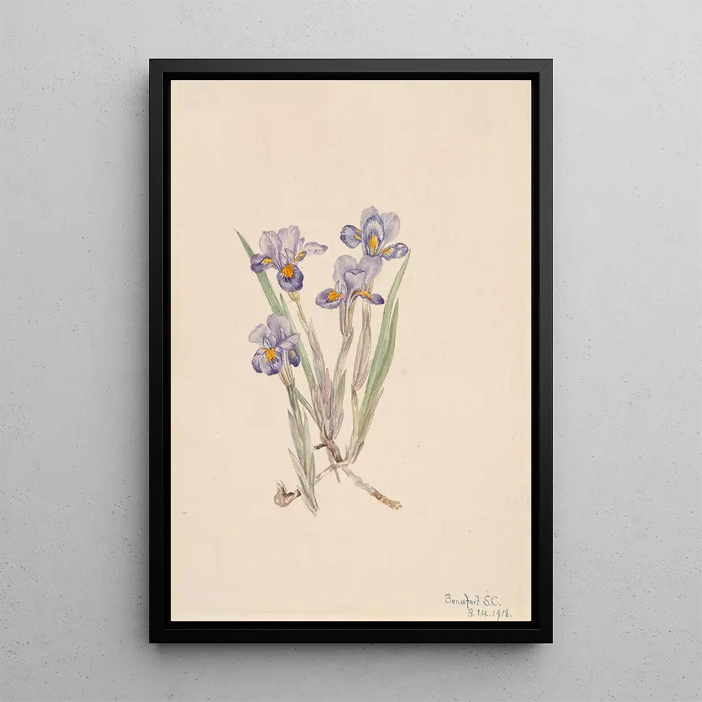 L'Iris printanier, eller Iris verna, är ett konsttryck som framkallar vårens mildhet och friskhet. Mary Vaux Walcott, med sin oöverträffade talang för botanisk illustration, ger oss en livfull representation av denna delikata blomma. Nyanser av lila och gult blandas harmoniskt, vilket skapar en slående kontrast som fångar ögat. Varje kronblad är noggrant detaljerat, vilket avslöjar texturen och lättheten hos denna ikoniska växt. Den våriga atmosfären som utstrålar verket inbjuder till eftertanke och uppskattning av naturens flyktiga skönhet.