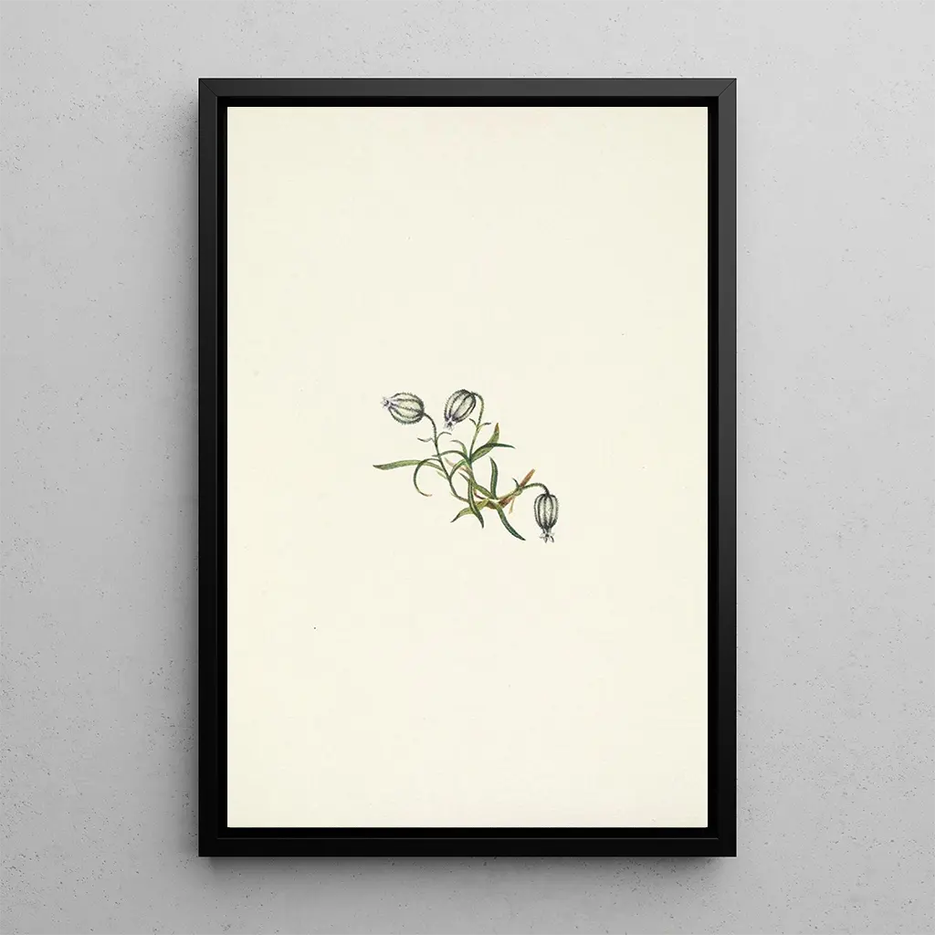 Konsttrycket av målningen Compagnon lutande Lychnis apetala fördjupar oss i en blomstrande värld fylld av mildhet. Pastellnyanser, från mjukt rosa till delikat grönt, vävs samman harmoniskt och skapar en lugnande atmosfär. Mary Vaux Walcott, med sin noggranna teknik, lyckas fånga denna växts skörhet, nästan som om den böjer sig under tidens tyngd. Detaljer som bladnervor och petalernas textur vittnar om en noggrann observation och en kärlek till naturen, och bjuder in betraktaren till en tyst och respektfull kontemplation.