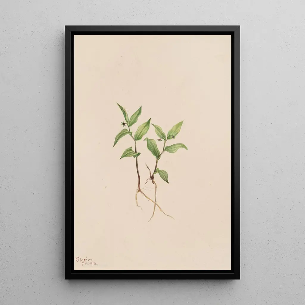 Den konsttryck av Kruhsea Kruhsea streptopoides av Mary Vaux Walcott visar en fascinerande utforskning av den unika floran. De livfulla nyanser av grönt och gult, kombinerade med formernas elegans, framkallar rikedomarna i de ekosystem där denna växt trivs. Walcotts teknik, som förenar precision och känslighet, gör det möjligt att känna texturen på bladen och lättheten hos blommorna. Detta verk är en verklig hyllning till biodiversiteten och bjuder in betraktaren att uppskatta den ofta okända skönheten hos växtarter.