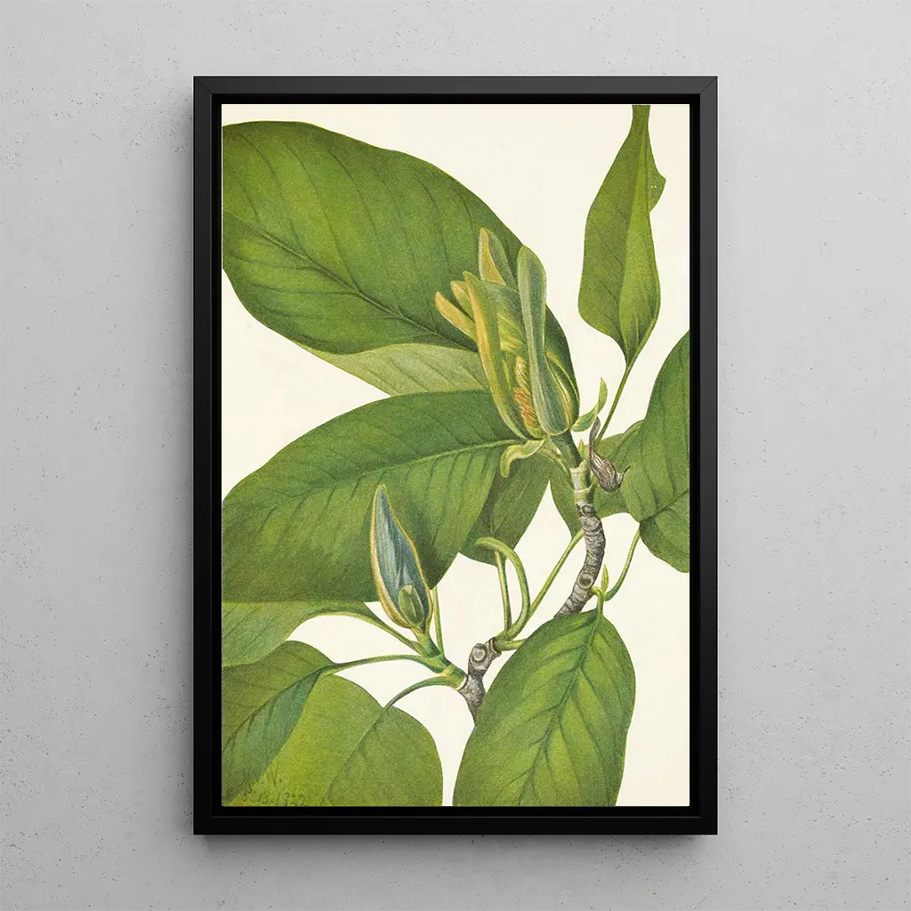 Magnolia acuminata : en hyllning till naturlig skönhet Konsttrycket av Magnolia acuminata fördjupar oss i en blomstrande värld där petalernas ömtålighet möter färgernas kraft. Nyansen av grönt och gult möts harmoniskt och skapar en lugn och rofylld atmosfär. Den akvarellteknik som konstnären använder fångar blomstens lätthet samtidigt som den ger djup som inbjuder till flykt. Varje detalj är noggrant återgiven, från bladnervor till blomsters konturer, vilket vittnar om en sann kärlek till naturen. Detta verk är en inbjudan att betrakta magnolians flyktiga skönhet, symboler för förnyelse och mildhet. Mary Vaux Walcott : en pionjär inom botanisk konst Mary Vaux Walcott, amerikansk konstnär och botanist, lyckades förena sin kärlek till naturen med sitt konstnärliga talang. Aktiv i början av 1900-talet, påverkades hon av den naturalistiska rörelsen och strävade efter att skildra den amerikanska floran med vetenskaplig precision. Hennes verk, ofta skapade under hennes utforskningar i nationalparker, vittnar om ett djupt engagemang för naturens bevarande. Walcott bidrog också till dokumentationen av växtarter, vilket gör henne till en ikon inom botanisk konst. Hennes arbete är inte bara konstnärligt utan också pedagogiskt, och bidrar till att öka allmänhetens medvetenhet om biodiversitetens rikedom. Ett dekorativt inköp med många fördelar Konsttrycket av Magnolia acuminata är ett perfekt val för att försköna ditt hem, oavsett om det är i vardagsrummet, på kontoret eller i sovrummet. Dess utskriftskvalitet och trohet mot originalfärgerna gör det till ett blickfång som drar till sig uppmärksamhet och väcker beundran. Med sin obestridliga estetiska attraktion ger detta konsttryck en frisk och lugnande touch till din inredning. Genom att integrera denna väggbonad i ditt utrymme skapar du en varm och välkomnande atmosfär, samtidigt som du hyllar naturens skönhet. Detta verk är mycket mer än bara en dekoration – det är en verklig inspirationskälla i vardagen.