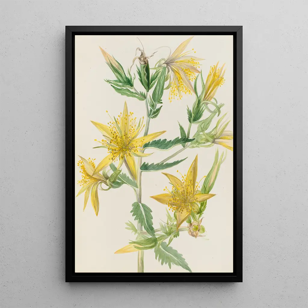 Konsttrycket Mentzelia laevicaulis av Mary Vaux Walcott är en verklig hyllning till naturens vilda skönhet. Med sina livfulla färger och delikata former lyfter detta verk fram den sällsynta växtens prakt. Gula och orangea nyanser lyser upp duken och framkallar solens värme över ängarna. Akvarelltekniken gör det möjligt för Walcott att fånga blommornas lätthet och transparens, vilket skapar en atmosfär av friskhet och vitalitet. Varje detalj, varje nyans, bjuder in betraktaren att uppskatta den botaniska floraens storhet.