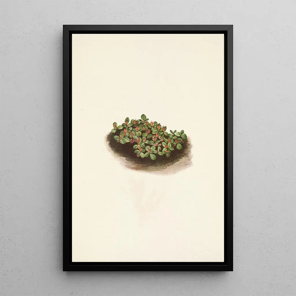 Konsttrycket Saule des neiges Salix nivalis av Mary Vaux Walcott framkallar en känsla av ömtålig och finstämd skönhet. De mjuka nyanserna av vitt och blått blandas för att skapa en lugnande atmosfär, medan de noggrant utarbetade detaljerna av blad och grenar fångar essensen av vintern. Den akvarellteknik, som används med fin precision, ger konstnären möjlighet att leka med ljus och skugga, vilket ger liv åt denna växt som är emblem för de kalla regionerna. Varje penseldrag verkar berätta historien om naturens motståndskraft inför vinterns hårdhet, och bjuder in betraktaren till en fridfull eftertanke.