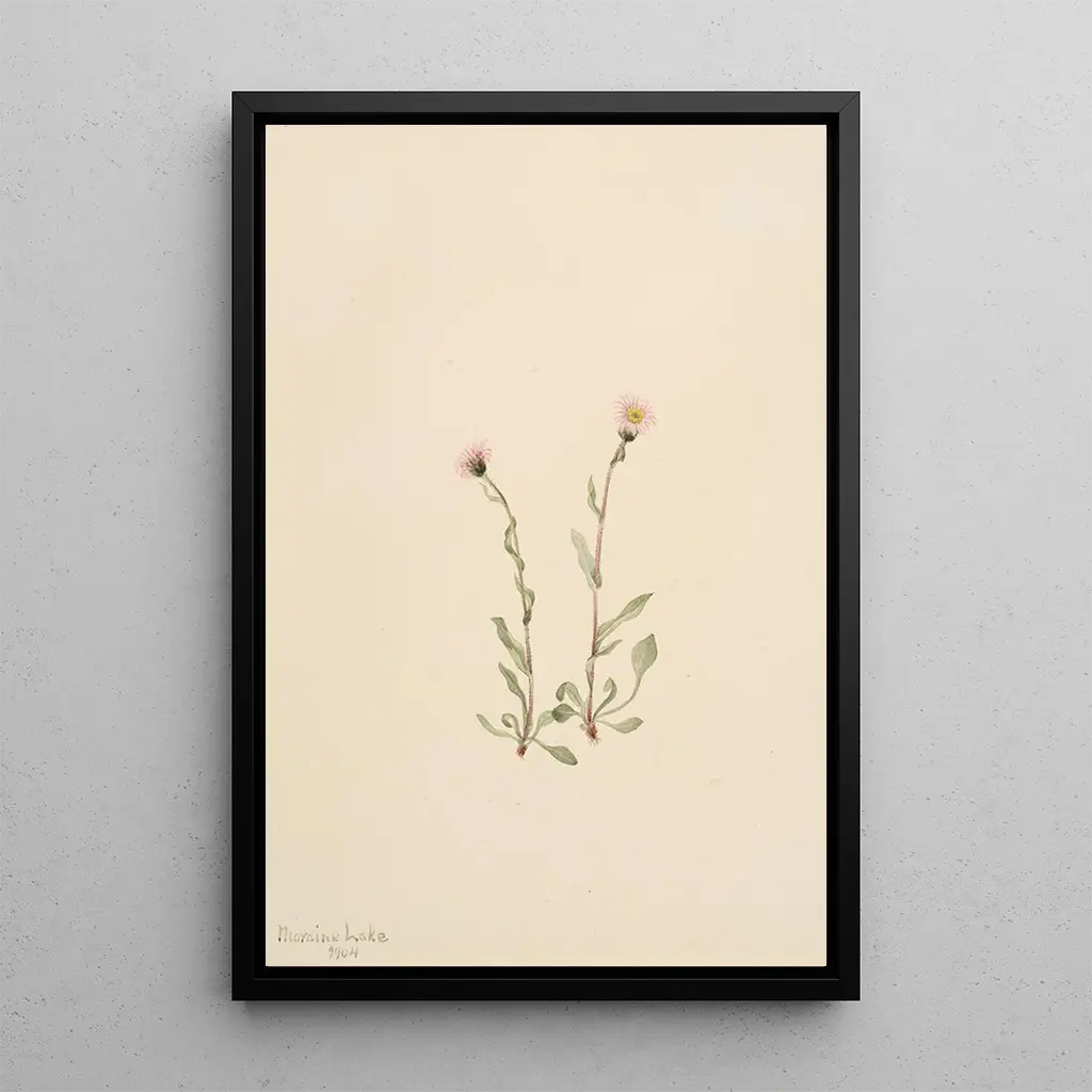 Konsttrycket av Vergerette rose Erigeron jucundus för oss in i en livfull värld av färger och mjukhet. De delikata nyanserna av rosa och grönt flätar samman för att skapa en lugnande, nästan drömlik atmosfär. Mary Vaux Walcott, med sin behärskning av botaniska tekniker, lyckas fånga den flyktiga skönheten hos denna växt. Varje kronblad tycks dansa under ljuset, och bjuder in betraktaren till en lugn reflektion. Verket framkallar en hemlig trädgård, där naturen blomstrar i all sin prakt, och erbjuder ett ögonblick av vila mitt i vardagens frenesi.