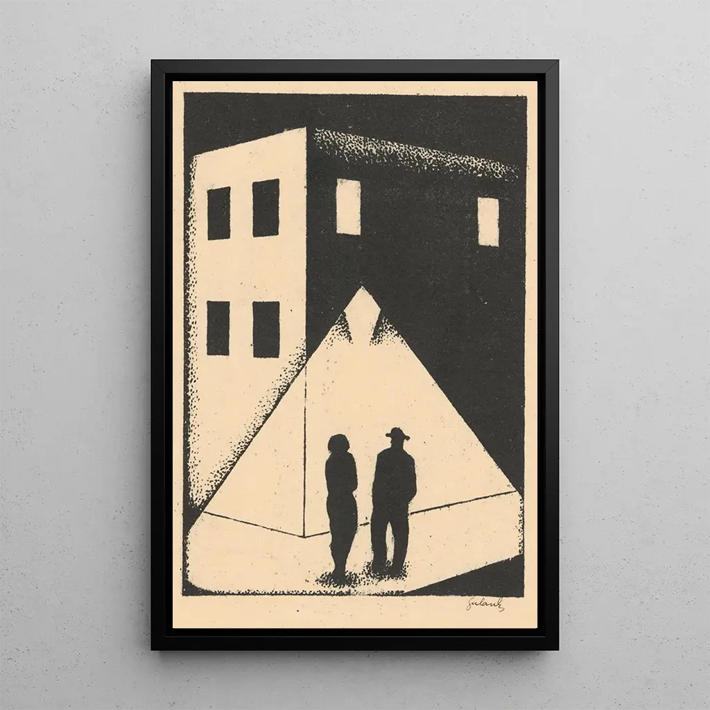 La konsttryck La rencontre de Mikuláš Galanda capture un moment d'intimité et de connexion entre deux personnages. Les couleurs douces et les formes fluides créent une atmosphère poétique, presque onirique. La technique de Galanda, qui mêle le figuratif à des éléments stylisés, permet de ressentir la profondeur des émotions qui émanent de cette scène. Chaque détail, des expressions faciales aux gestes délicats, contribue à l'impression d'une rencontre chargée de sens, invitant le spectateur à s'interroger sur la nature des relations humaines.