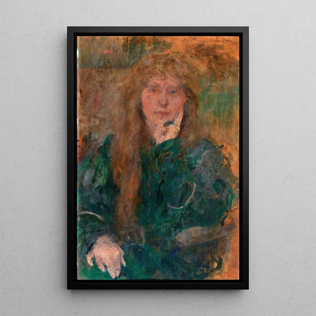 I "Natalie Barney" skildrar Olga Boznańska med fin känsla den komplexa personligheten hos denna författare och mecenat, emblem för den Belle Époque. Tavlan avslöjar en palett av mjuka färger, där pastellnyanser flätas samman för att skapa en intim och eftertänksam atmosfär. Barney’s blick, fångad med en anmärkningsvärt precision, verkar genomborra betraktaren och inbjuder till djup reflektion. Varje penseldrag vittnar om Boznańskas beundran för sitt motiv, samtidigt som det erbjuder en modern och djärv syn på kvinnan vid denna tid.