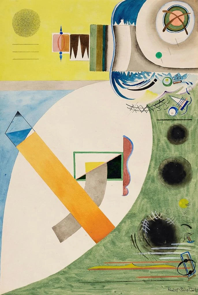 Rudolf Bauer, konstnär av tysk härkomst, har satt avtryck i modern konsthistoria med sin innovativa approach till abstrakt konst. Aktiv under 1920-talet, var han en del av expressionistiska rörelsen innan han utvecklade sin egen stil, präglad av geometriska kompositioner och vibrerande färger. Hans arbete påverkades av konstnärliga strömningar som Bauhaus och konstruktivism. RB0551 Serioso vittnar om denna utveckling och illustrerar hans förmåga att förena geometrisk precision med estetisk känslighet. Bauer är erkänd inte bara för sina verk, utan också för sin roll som mentor för unga konstnärer.