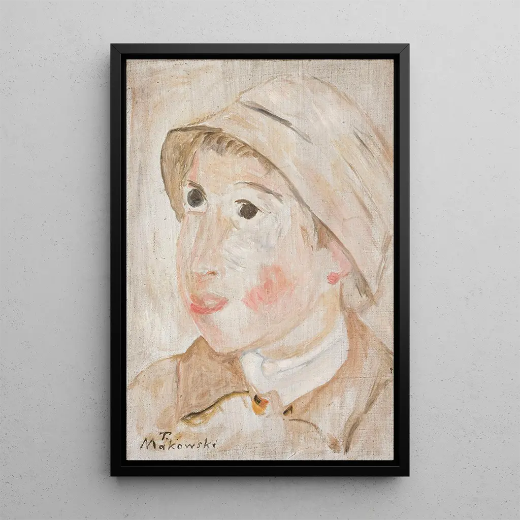 Konsttrycket av "Tête de garçon au chapeau" av Tadeusz Makowski visar ett fängslande porträtt, där den unge pojken verkar bära på en hemlighet. Nyanser av blått och jordfärger, kombinerade med ljusinslag, skapar en fascinerande och poetisk atmosfär. Makowski, med sin delikata teknik, lyckas fånga essensen av barndomen samtidigt som han avslöjar en emotionell djup. Hatten, det centrala elementet i kompositionen, tillför en dimension av nyfikenhet och bjuder in betraktaren att reflektera över den unge protagonisten tankar.