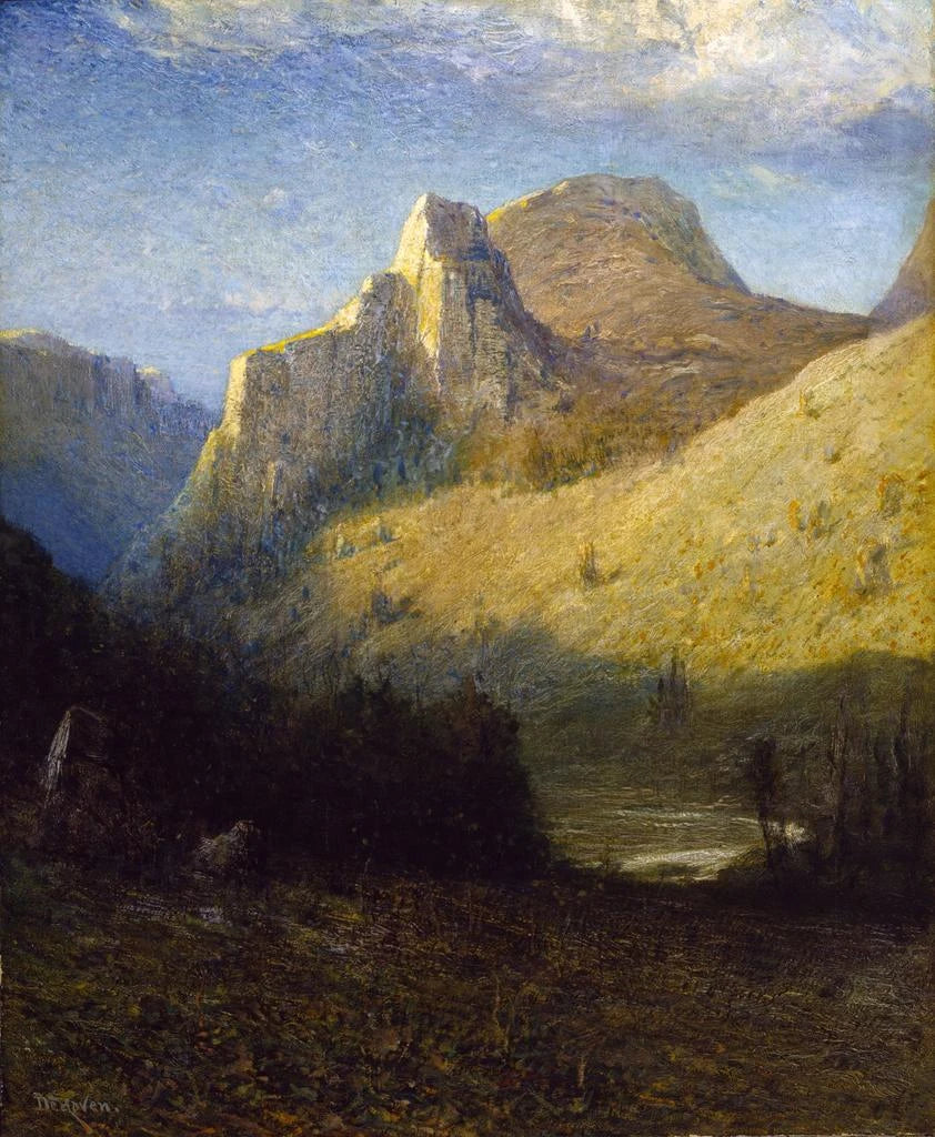 Konsttryck Castle Creek Canyon, Dakota du Sud - Franklin De Haven – Introduktion fängslande I den fascinerande världen av konst, lyckas vissa verk fånga själva essensen av sin omgivning, väcka en känsla av förundran och eftertanke hos oss. "Castle Creek Canyon, Dakota du Sud" av Franklin De Haven är ett av dessa verk som förflyttar betraktaren till hjärtat av de storslagna landskapen i västra Amerika. Denna målning, fylld av lugn, åkallar majestät av kanjoner och den vilda skönheten i naturen, samtidigt som den erbjuder en reflektion över harmonin mellan människan och hennes miljö. När man betraktar detta verk, förlorar man sig i en levande tavla där varje detalj verkar berätta en historia, den om en plats som är både verklig och mytisk. Stil och verkets särprägel Franklin De Havens stil utmärker sig genom en realistisk och poetisk ansats, där ljuset spelar en avgörande roll. I "Castle Creek Canyon" skapar skuggor och ljus en nästan mystisk atmosfär, som bjuder in blicken att utforska de mest hemliga hörnen av landskapet. Färgerna, delikata och nyanserade, ger liv åt duken, medan formerna av berg och träd verkar smälta samman i en harmonisk balett. De Haven lyckas fånga inte bara den visuella skönheten i naturen utan också dess andliga essens, vilket gör varje element i kompositionen meningsfullt. Denna fusion av teknik och känsla ger verket en sällsynt djup, vilket gör att betraktaren kan känna en intim koppling till det avbildade landskapet. Konstnären och hans inflytande Franklin De Haven, amerikansk konstnär från 1900-talet, har etablerat sig som en framstående figur inom landskapskonsten. Påverkad av de stora mästarna inom landskapsmåleri, utvecklade han en egen stil som kombinerar teknisk precision med konstnärlig känslighet. Hans verk kännetecknas av en ständig utforskning av teman kring natur och rymd, vilket vittnar om en djup beundran för amerikanska landskap. De Haven har fångat tidens anda, hyllat skönheten i ännu orörda territorier. Hans påverkan på samtida landskapskonst är obestridlig, och inspirerar många konstnärer att följa hans exempel, samtidigt som han fortsätter en tradition av observation och respekt för naturen. En enastående väggdekoration signerad Artem Legrand I...
