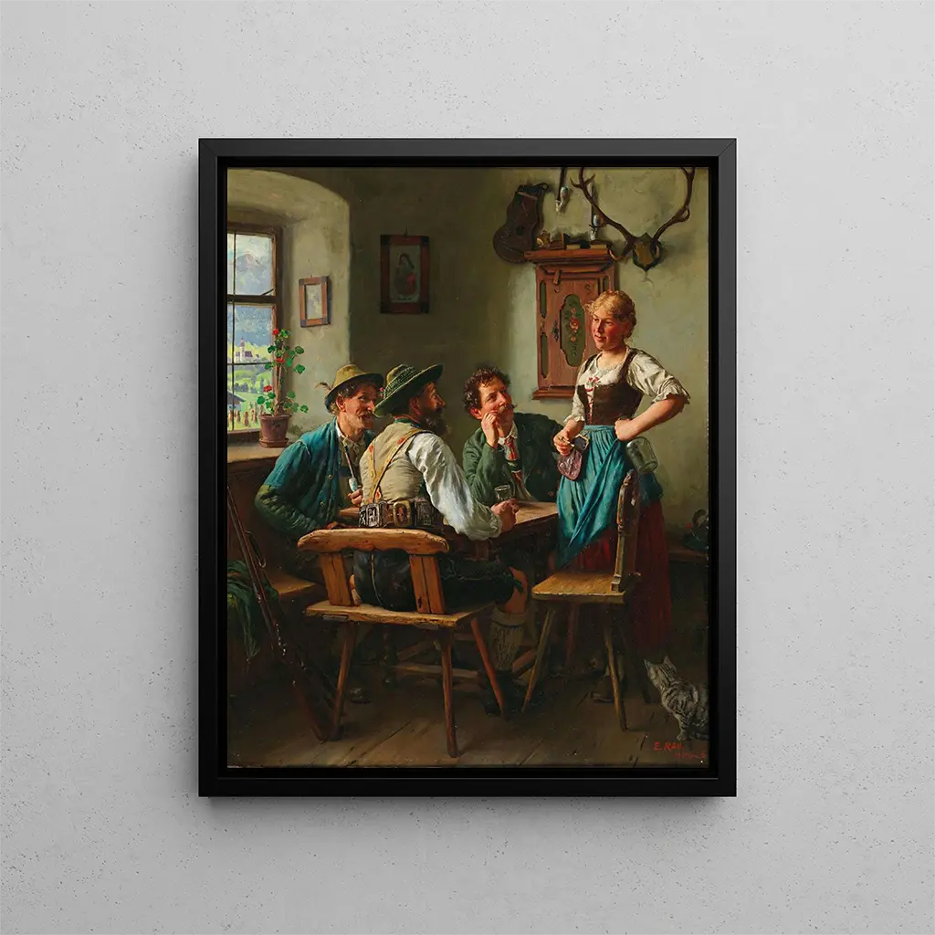 Inom konstvärlden lyckas vissa verk fånga vardagens essens med sådan intensitet att de överskrider sin tid. "På värdshuset" av Emil Rau är ett av dessa verk. Denna målning, som skildrar en scen av gemytlighet och delaktighet, inbjuder betraktaren att kliva in i en värld där tiden tycks stå stilla. Den varma och intima atmosfären som utstrålar av detta konstverk är en inbjudan till eftertanke, till reflektion över mänskliga interaktioner och de livsögonblick som förenar oss. Rau, genom sin talang, lyckas bevara flyktiga ögonblick, och förvandlar det vardagliga till skönhet.
