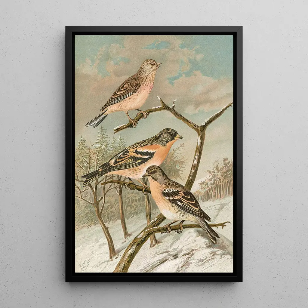 Johann Friedrich Naumann, naturalist och illustratör från 1800-talet, präglade sin tid med sina precisa och poetiska skildringar av fåglar. Påverkad av de vetenskapliga upptäckterna under sin tid, lyckades han förena konst och ornitologi, och skapade verk som blivit referenser inom området. Hans passion för fåglar och hans noggrannhet gör honom till en pionjär inom ornitologisk illustration. Genom sina verk har Naumann inte bara dokumenterat fågelfaunan, utan också ökat allmänhetens medvetenhet om naturens skönhet och sårbarhet. Hans konsttryck av Acanthis cannabina Fringilla montifringilla är ett utmärkt exempel.