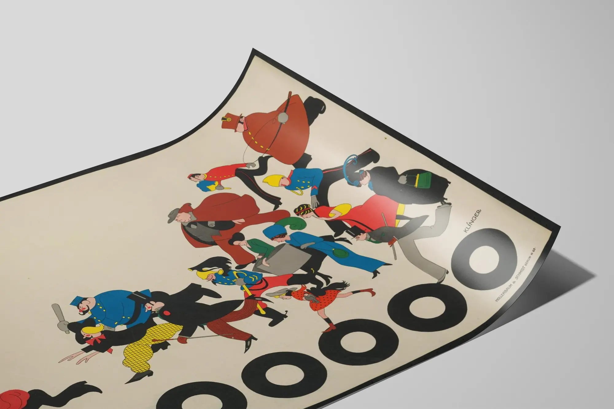 Cette affiche vintage intitulée « Eine Million » capture une scène animée et pleine de vie où une dizaine de personnages colorés sont représentés en pleine course. Chacun des personnages, habillé dans des styles variés et caractéristiques des débuts du 20e siècle, évoque une atmosphère historique et artistique qui apportera une touche rétro et originale à votre décoration murale. L’œuvre se distingue par sa composition dynamique, où les silhouettes aux contours nets se dirigent vers la gauche, contrastant avec un arrière-plan uni et clair, renforçant ainsi l’intensité du mouvement. Le format large de cette affiche permet de valoriser les détails singuliers de chaque personnage, certains portant des uniformes, d'autres vêtus de façon élégante ou fantaisiste. Le grand nombre « 1000000 » inscrit en bas en caractères gras et noirs, supporte visuellement la scène, incarnant un élément graphique fort qui attire immédiatement le regard. Parfait pour un style décoratif unique, ce poster s’intègre aisément dans un intérieur moderne comme dans des environnements plus classiques, apportant une touche d’originalité et d’histoire visuelle. Dans une chambre, un salon ou un bureau, cette affiche vintage se pose comme un élément de décoration murale qui capte l’attention. Elle conviendra aussi aux collectionneurs d’illustrations anciennes ou aux passionnés d’art graphique. Son usage permet de créer une ambiance dynamique tout en conservant une esthétique épurée grâce à son fond clair. Ce poster peut être associé à d'autres œuvres au style graphiste pour un ensemble cohérent ou devenir une pièce centrale dans une composition murale remplie d’éléments variés. Son ambiance, à la fois ludique et stylisée, s’adapte parfaitement à tous ceux qui souhaitent apporter une note d’histoire graphique et une touche d'humour visuel à leur intérieur. En somme, cette affiche « Eine Million » est bien plus qu’une simple décoration murale : c’est un véritable voyage dans le temps à travers l’art de la caricature et de l’illustration ancienne, qui invite au regard et à la réflexion. Elle peut parfaitement s’intégrer dans un univers design, vintage ou éclectique, pour offrir à vos murs un caractère unique et mémorable.