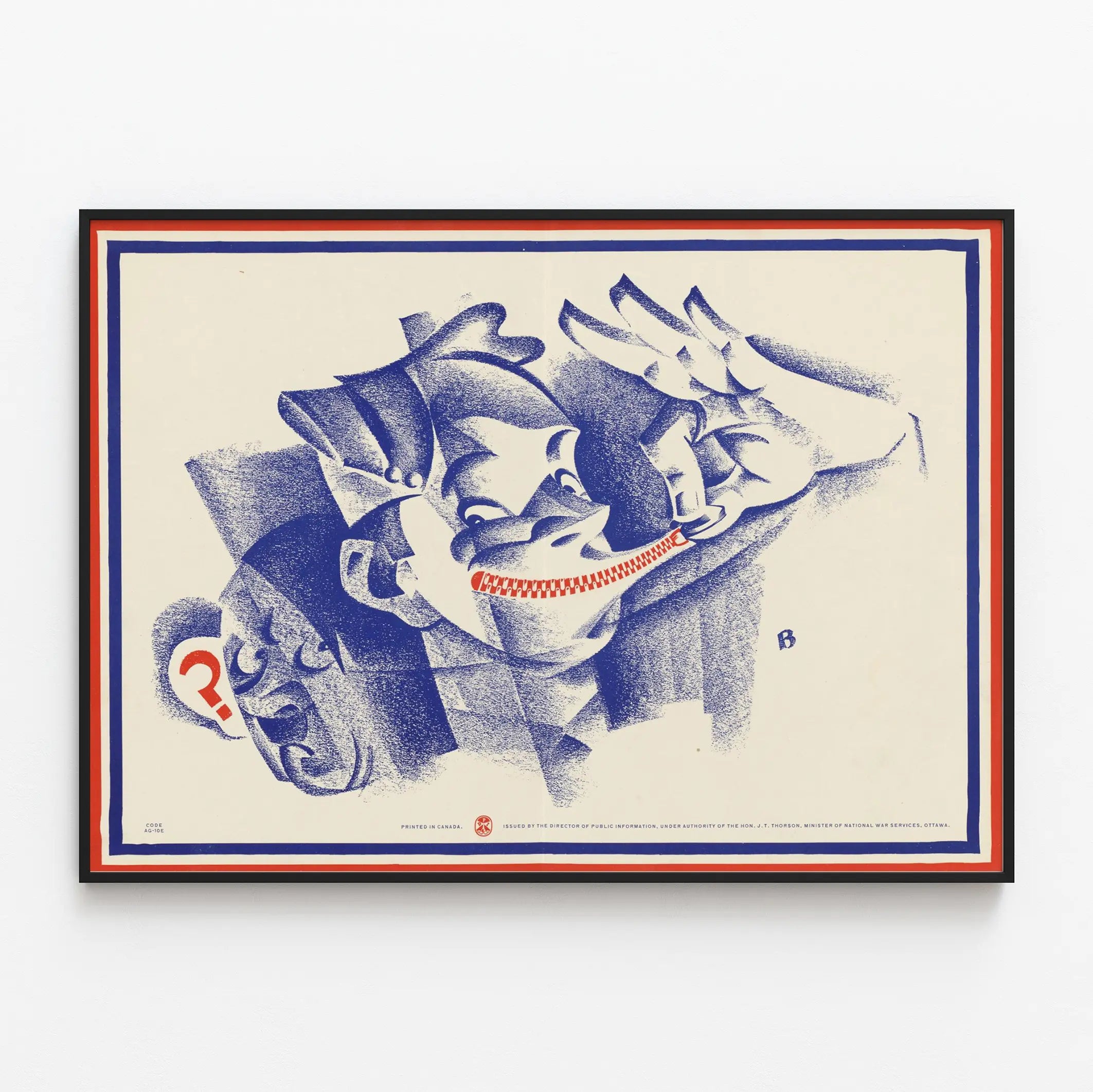 Denna unika affisch leker med en slående kontrast mellan djupblå nyanser och den livfulla röda som framhäver blixtlåset som ersätter läpparna. Kompositionen visar ett stiliserat ansikte med kantiga och markerade drag, som påminner om en skulptural form eller en kolteckning. Den korniga texturens effekt förstärker den grafiska och råa karaktären hos denna sammansättning, medan den begränsade färgpaletten skapar ett starkt och modernt visuellt intryck. Denna väggdekoration, centrerad kring ansiktsuttrycket och symboliken av tystnad som förmedlas av blixtlåset, framstår som ett konstnärligt och modernt affischstycke, perfekt för ett minimalistiskt eller konstnärligt hem. Den tvåfärgade ramen i rött och blått framhäver bilden och leder blicken till de viktiga detaljerna, vilket förstärker det visuella budskapet i verket. Den högkvalitativa pappersutskriften ger tavlan en tydlig närvaro på väggen, vilket gör denna affisch till ett centralt inslag i varje väggdekoration, där grafisk konst har en framträdande plats. Detta Artem Legrand-affisch kommer att tilltala konstälskare som uppskattar väggdekorationer med mening och eftertanke. Den passar perfekt i ett vardagsrum, ett kontor eller ett kreativt utrymme, och tillför en modern touch och en fängslande atmosfär till din inredning. Lägg till ett dekorativt föremål som väcker tankar och inspirerar, med denna tavla som visar ett fängslande ansikte med zip-läppar – ett starkt och estetiskt visuellt symbol.
