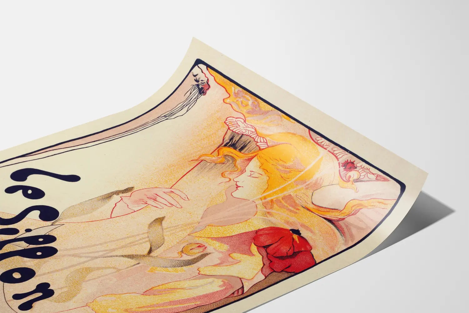 Upptäck denna väggdekoration affisch med titeln "Le Sillon", ett ikoniskt verk inom Art Nouveau-stilen skapat av konstnären Fernand Toussaint. Denna poster utmärker sig genom sina delikata kurvor och flytande linjer som förkroppsligar den förfinade estetik som kännetecknar denna konstnärliga epok. Kompositionen visar en kvinnlig figur med gyllene hår, stiliserad med subtila inslag av rosa och orange, vilket ger en ljus och varm känsla till hela verket. Affischen kombinerar grafiska element som blommor och organiska former, typiska för Art Nouveau-rörelsen, och fångar essensen av denna konstnärliga period där naturen och formens flytande karaktär stod i centrum. Texten "Le Sillon" är harmoniskt integrerad i bilden, med en böjd och originell typografi som förstärker den estetiska karaktären av detta verk. Denna väggdekoration affisch är perfekt för konst- och designälskare som vill tillföra en vintage och konstnärlig touch till sitt hem. Dess unika stil passar utmärkt i vardagsrum, kontor eller kreativa utrymmen, och skapar en mjuk och inspirerande atmosfär. Oavsett om du vill komplettera en samling av gamla affischer eller personifiera en vägg med ett subtilt grafiskt inslag, erbjuder denna affisch en lyckad kombination av visuell skönhet och konstnärligt uttryck. Tillverkad med omsorg är den redo att rama in och lyfta fram i alla typer av modern eller klassisk väggdekoration. Välj denna affisch som inbjuder till eftertanke med sina varma nyanser och eleganta komposition, och låt ett stycke Art Nouveau-stil flytta in i ditt hem, en stil som fortsätter att fascinera med sin tidlösa charm.