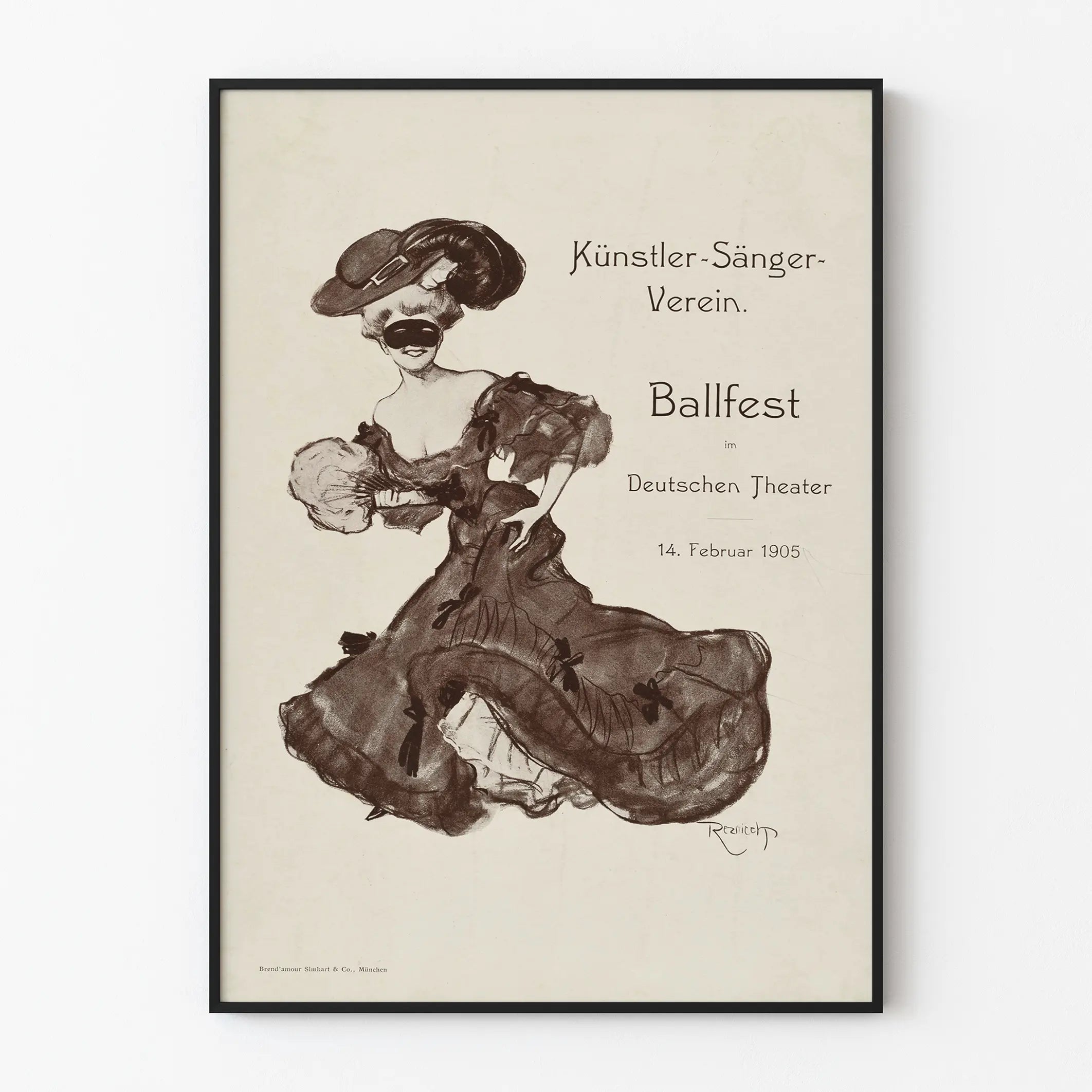 Poster Ballfest 1905 - Vintage väggdekoration för tysk teater