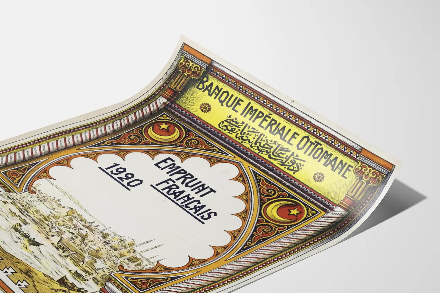 Gammal poster av Ottomanska imperiella banken för fransk lån 1920
