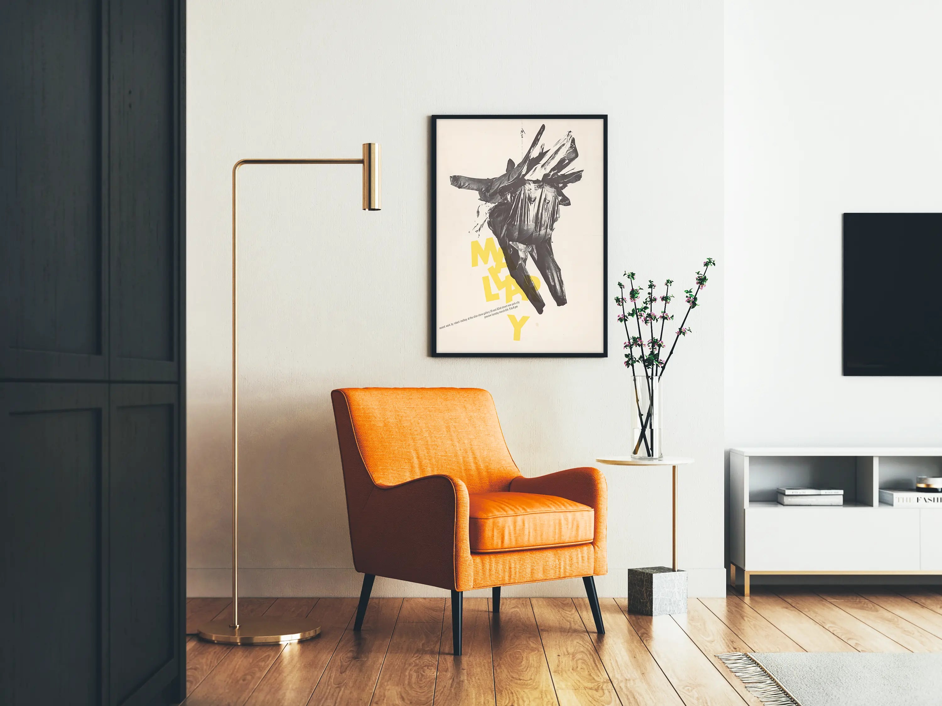 Ge en touch av samtida och originell konst till ditt hem med denna karakteristiska affisch signerad Robert Mallary. Denna väggdekoration visar en djärv komposition i svart och gult på en ljusbeige bakgrund, där en intensiv abstrakt form framträder, som påminner om en skulptur som blandar textila element och plastiska effekter. De gula gravyrerna som bildar ordet "MALLARY" tillför en känsla av dynamik och modernitet till verket, och skapar en elegant kontrast mot de mörka nyanserna i den centrala bilden. Denna poster är perfekt för konstälskare som vill berika sin väggdekoration med grafiska och karaktärsfulla verk. Dess minimalistiska stil och lek med skuggor och texturer passar utmärkt i moderna interiörer eller i utrymmen dedikerade till konst och kreativitet. Oavsett om det gäller ett vardagsrum, ett kontor eller en konstgalleri, erbjuder denna affisch en unik estetik som fångar blickar och skapar en sofistikerad och inspirerande atmosfär. Perfekt att rama in eller helt enkelt hänga upp, den passar harmoniskt i minimalistiska eller eklektiska miljöer och tillför djup och rörelse till dina väggar. Skapa dig ett konstverk som kombinerar enkelhet med visuell kraft för en originell samtida väggdekoration.