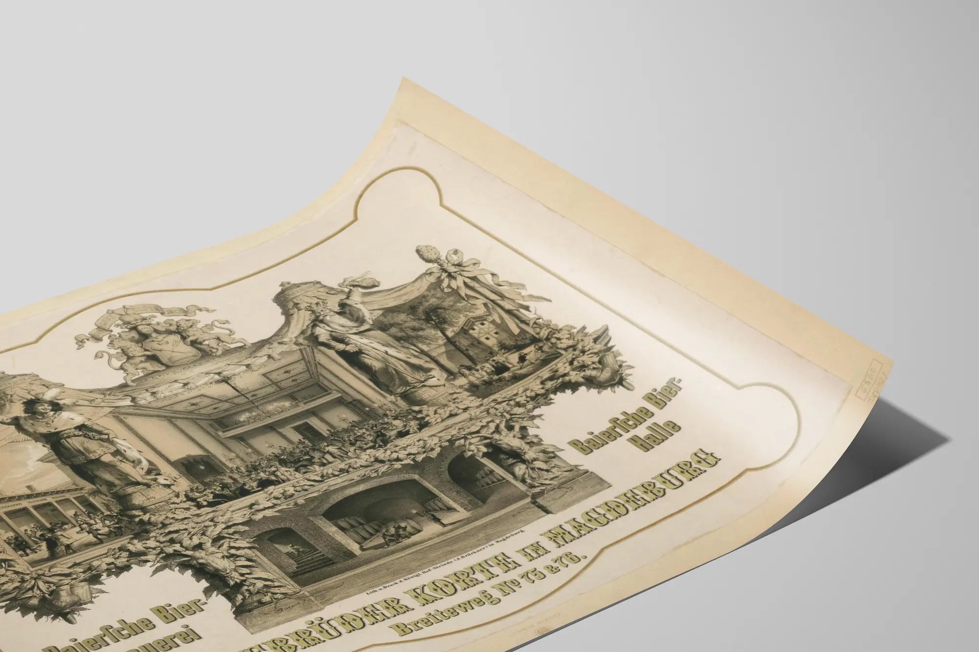 Vintageaffisch för Kafé- och Ölhallen av Gebrüder Korte i Magdeburg