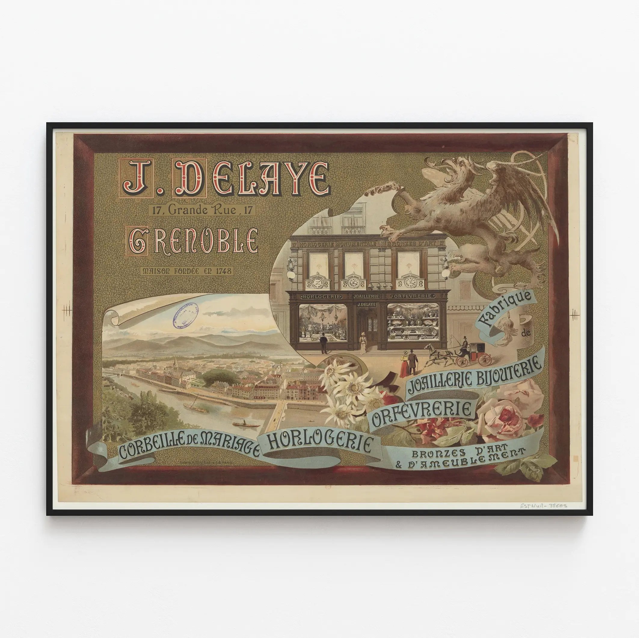 Vintageposter J. Delaye Juvelerare och Urmakare i Grenoble