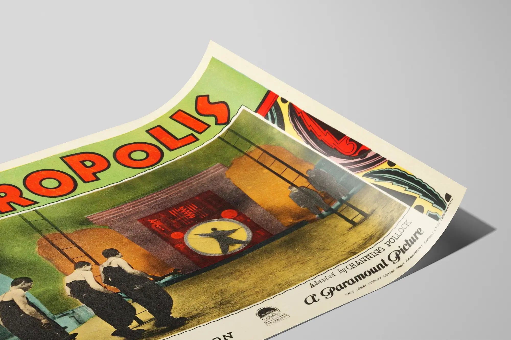 Den här vintageaffischen Metropolis erbjuder en unik väggdekoration, perfekt för älskare av klassisk film och retrodesign. Denna poster framhäver en ikonisk scen från den tyska stumfilmen science fiction Metropolis, regisserad av Fritz Lang, som förkroppsligar den industriella och expressionistiska atmosfären från 1920-talet. Den centrala bilden visar flera karaktärer klädda i mörka overaller som rör sig i en mekanisk miljö dominerad av en stor röd och gul klocka, symbol för tid och disciplin i verket. Den färgglada ramen med geometriska mönster i art déco-stil tillför en äkta och konstnärlig touch som kan berika alla inomhusmiljöer. Denna väggmålning passar perfekt in i trenderna för vintage väggdekoration, och tillför karaktär och djup till både moderna och klassiska utrymmen. Oavsett om det är för ett vardagsrum, ett kontor eller ett rum dedikerat till film, kan denna affisch bli ett fascinerande konstnärligt blickfång. Dess grafiska stil och livfulla toner skapar en visuell balans mellan modernitet och nostalgi, vilket tilltalar filmälskare, grafisk design och gamla affischer. Denna Metropolis-postersymboliserar en visionär tidsanda samtidigt som den erbjuder ett högkvalitativt dekorativt element som personifierar väggarna med en stark och dynamisk estetik. Genom att välja denna affisch som väggdekoration, integrerar du ett föremål fyllt av historia och stil, som stimulerar nyfikenhet och väcker beundran. Denna konstnärliga detalj är idealisk för tematiska samlingar eller som en originell present till filmentusiaster och retroinredningsälskare.