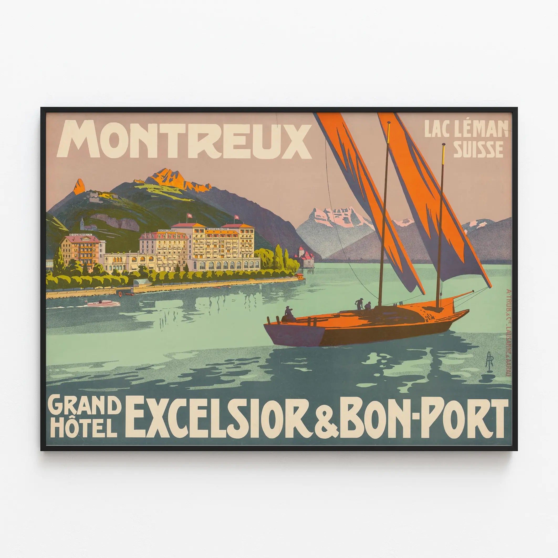 Vintageposter Montreux Grand Hôtel Excelsior & Bon-Port Lac Léman Schweiz