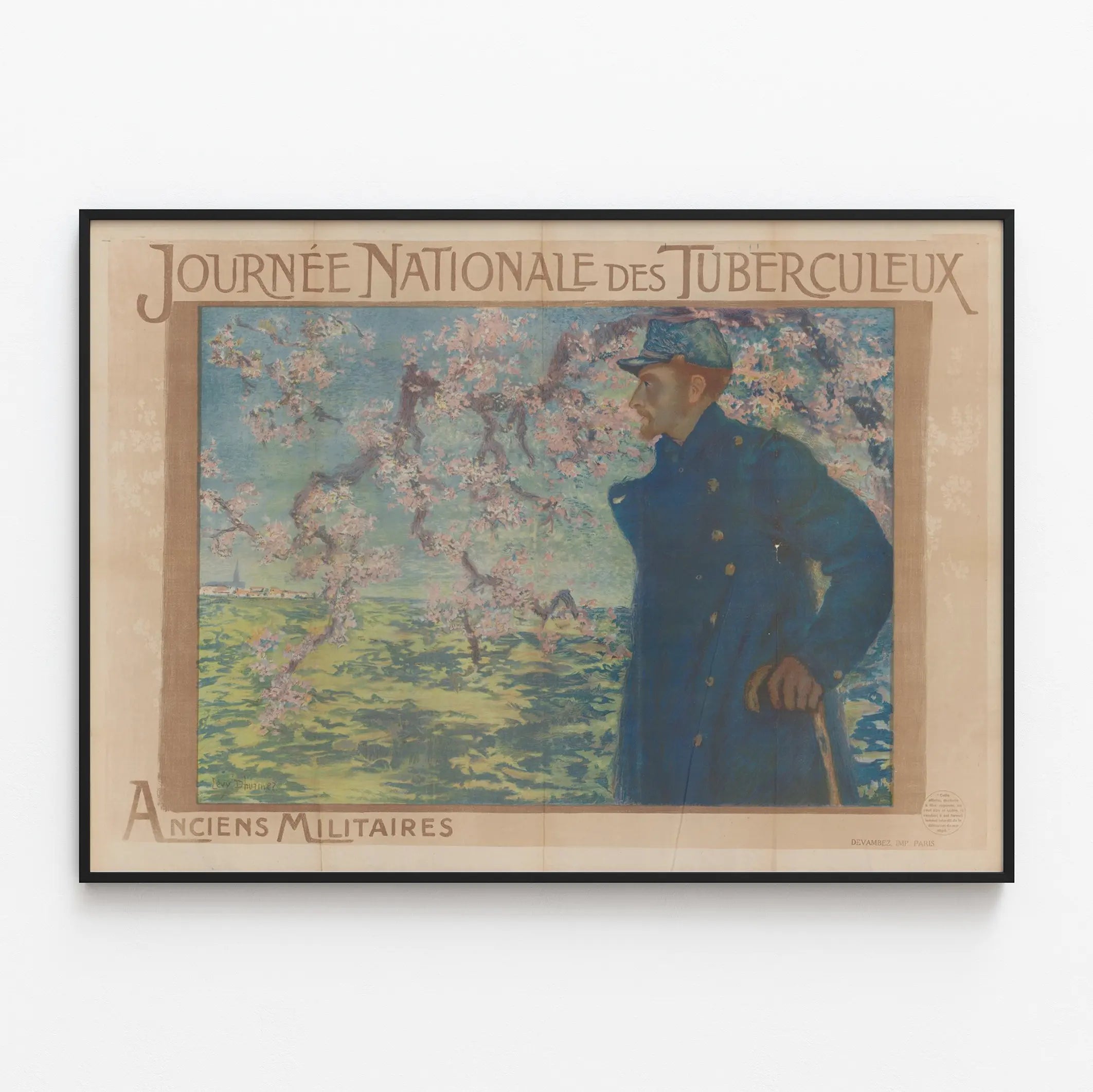 Oavsett om du är passionerad för militärminne, folkhistoria eller helt enkelt söker en originell väggdekoration med mening, är denna affisch ett utmärkt val. Dess format möjliggör en vacker presentation på en vägg ensam eller tillsammans med andra vintageaffischer i en harmonisk stil. Ge ditt hem en konstnärlig och historisk dimension med denna affisch "Nationella dagen för tidigare tuberkulösa militärer", ett verkligt grafiskt vittnesmål att bevara och visa upp.