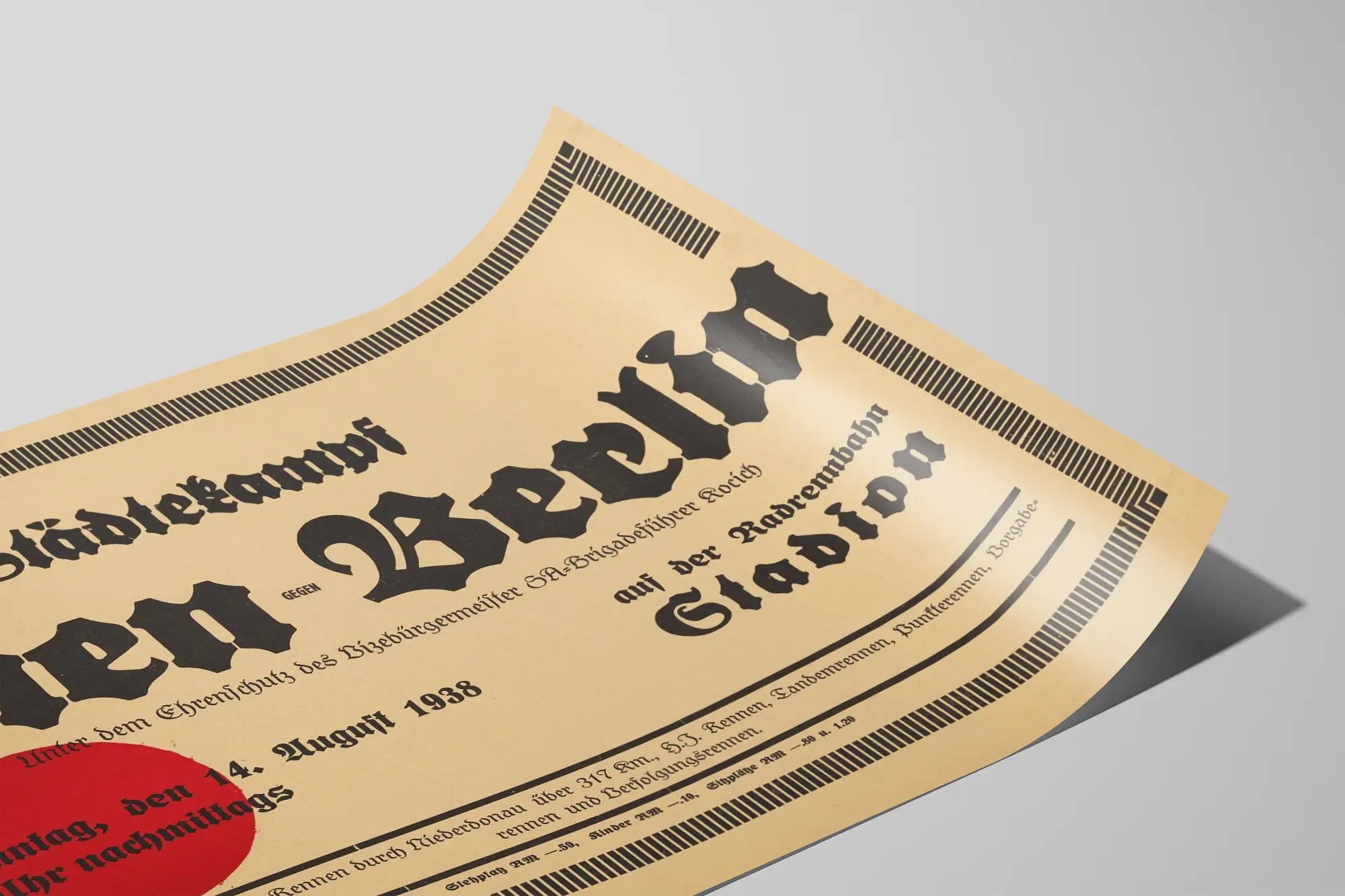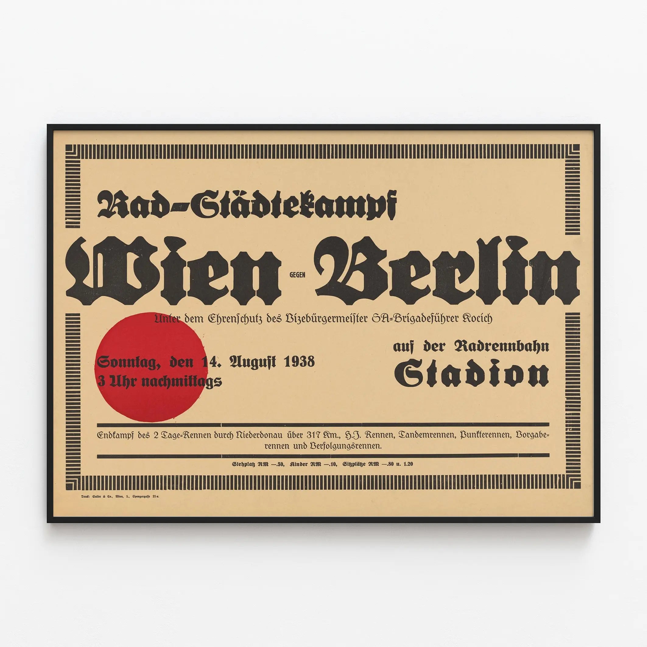 Vintageposter Rad-Stadtekamp Wien mot Berlin 1938