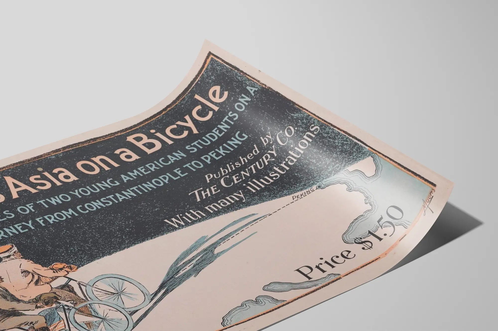 Denna vintageaffisch visar en fängslande illustration av ett cykeläventyr genom Asien, med två unga amerikanska studenter som ger sig av från Konstantinopel till Peking. Denna poster är ett enastående dekorationsföremål för väggar, särskilt lämpad för entusiaster av resor, historia eller upptäcktsfärder. Den retroinspirerade designen framhäver de två cyklisterna i rörelse, vilket symboliserar äventyrslust och upptäckten av nya kulturer. Den mörka bakgrunden kontrasterar mot de mjuka färgerna på figurerna och deras rutt, vilket ger ett visuellt intryck som är både dynamiskt och elegant. Denna affisch utmärker sig genom sin gamla stil och sina många illustrerade motiv, vilket gör den till ett unikt dekorationsföremål, perfekt för ett vardagsrum, ett kontor eller ett sällskapsrum. Genom att välja denna väggdekoration tillför du en touch av originalitet och en berättande charm till ditt hem, idealiskt för att väcka nyfikenhet och inspirera besökare. Denna poster framkallar både den mjuka rörligheten och rikedomarna i transkontinentala resor, och förkroppsligar en dekorativ konst med mening och historia. Den är ett vackert föremål att rama in och berika dina väggar med en vintagebild med tidlös charm.