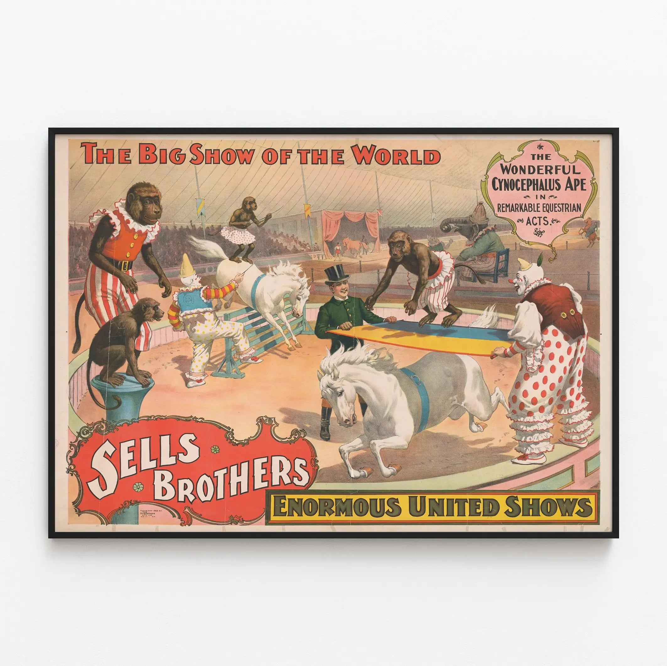 Vintageposter Sells Brothers - Ryttarshow med apor och clowner