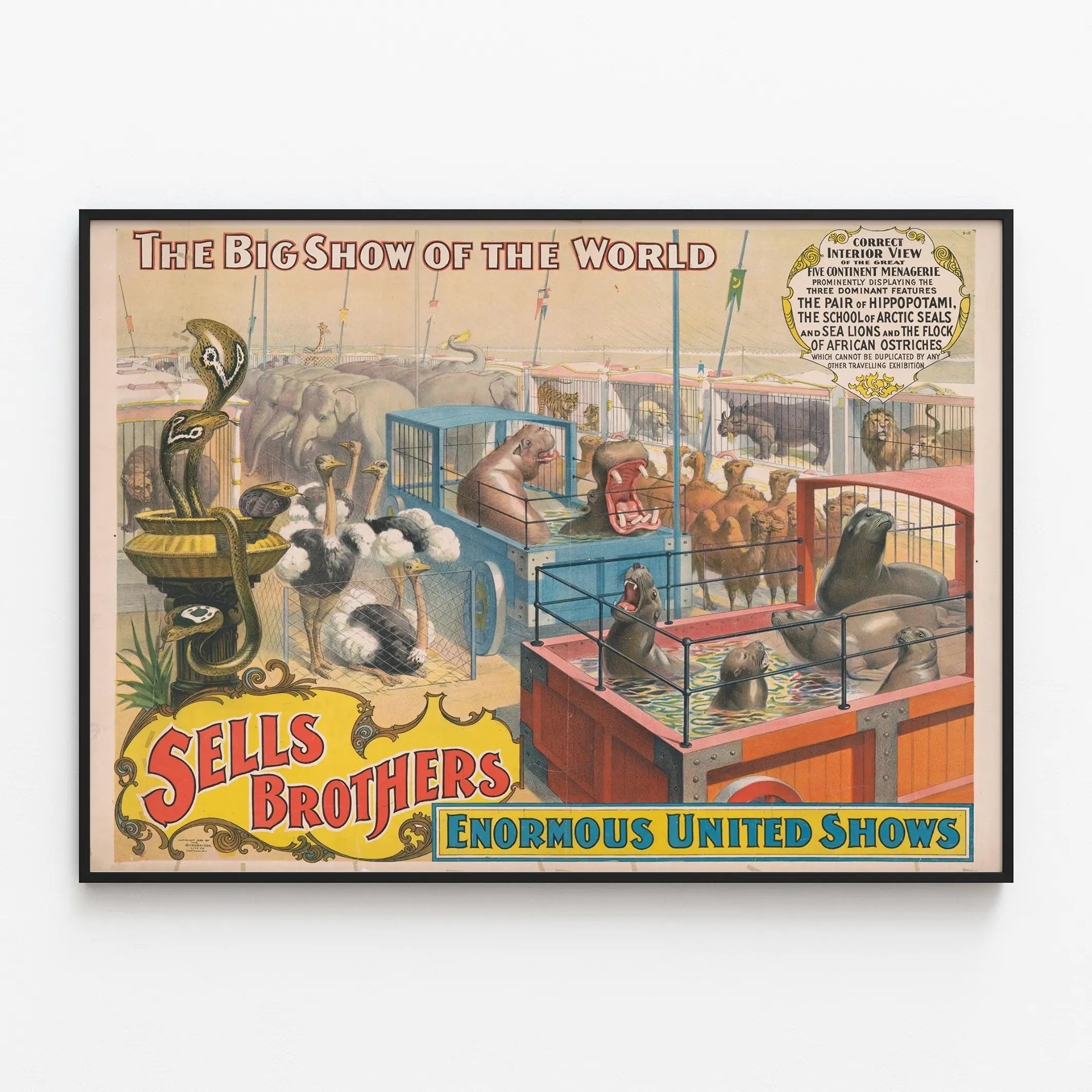 Vintageposter Sells Brothers Enormous United Shows - Djurmotiv för väggdekoration
