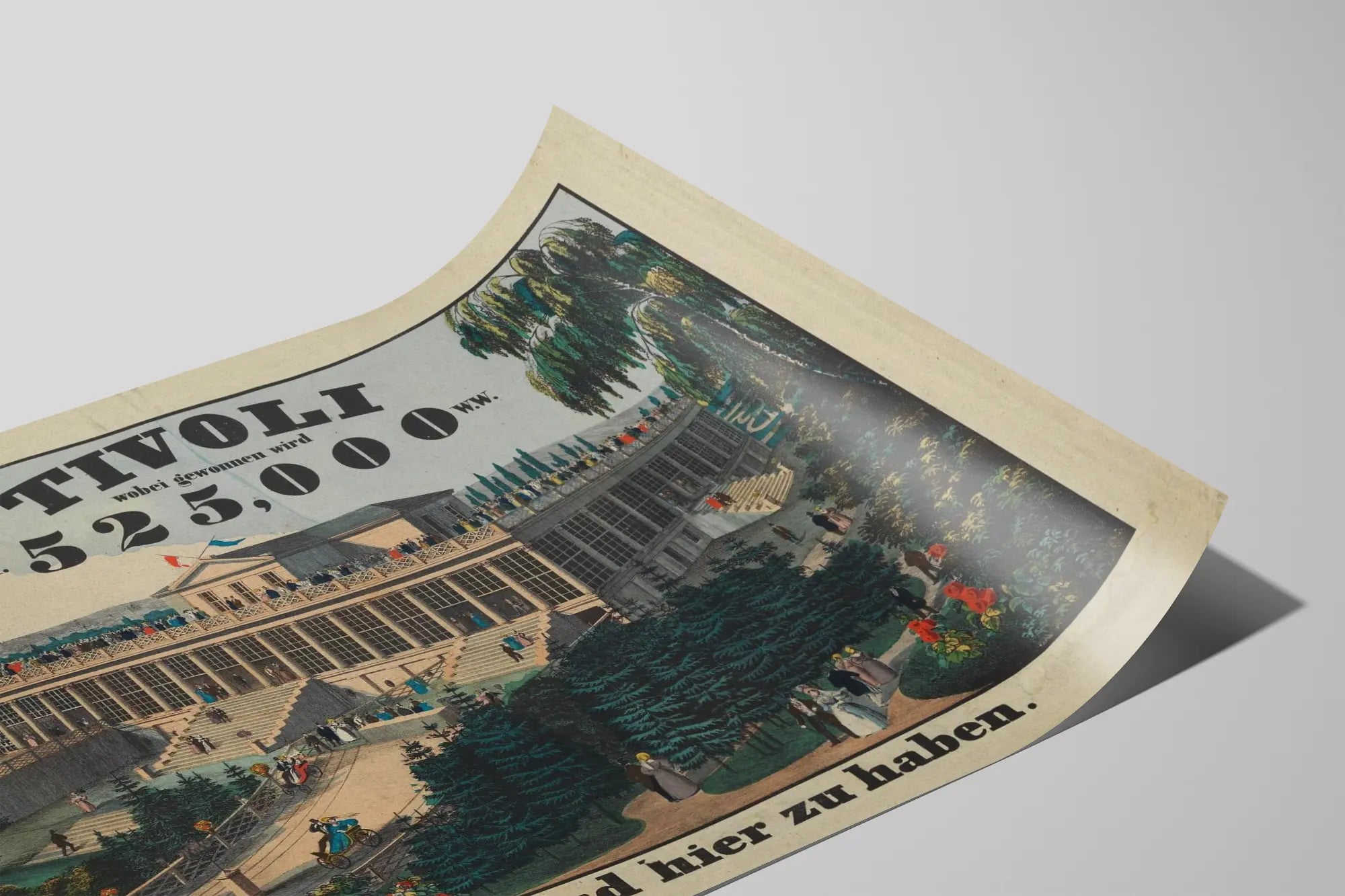 Sammanfattningsvis representerar denna affisch « Tivoli » en finstämd blandning av kulturarv, natur och socialt liv, och fångar ett historiskt ögonblick fyllt av liv och elegans. För en väggdekoration rik på äkthet och charm är den ett utmärkt och originellt val, som kan förvandla ett utrymme till en inspirerande och estetisk miljö.