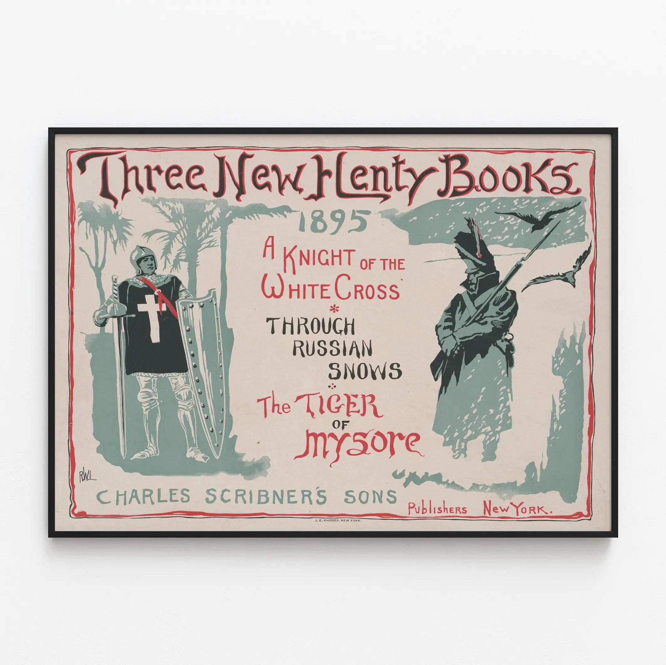 Vintageposter Three New Henty Books 1895 väggdekoration