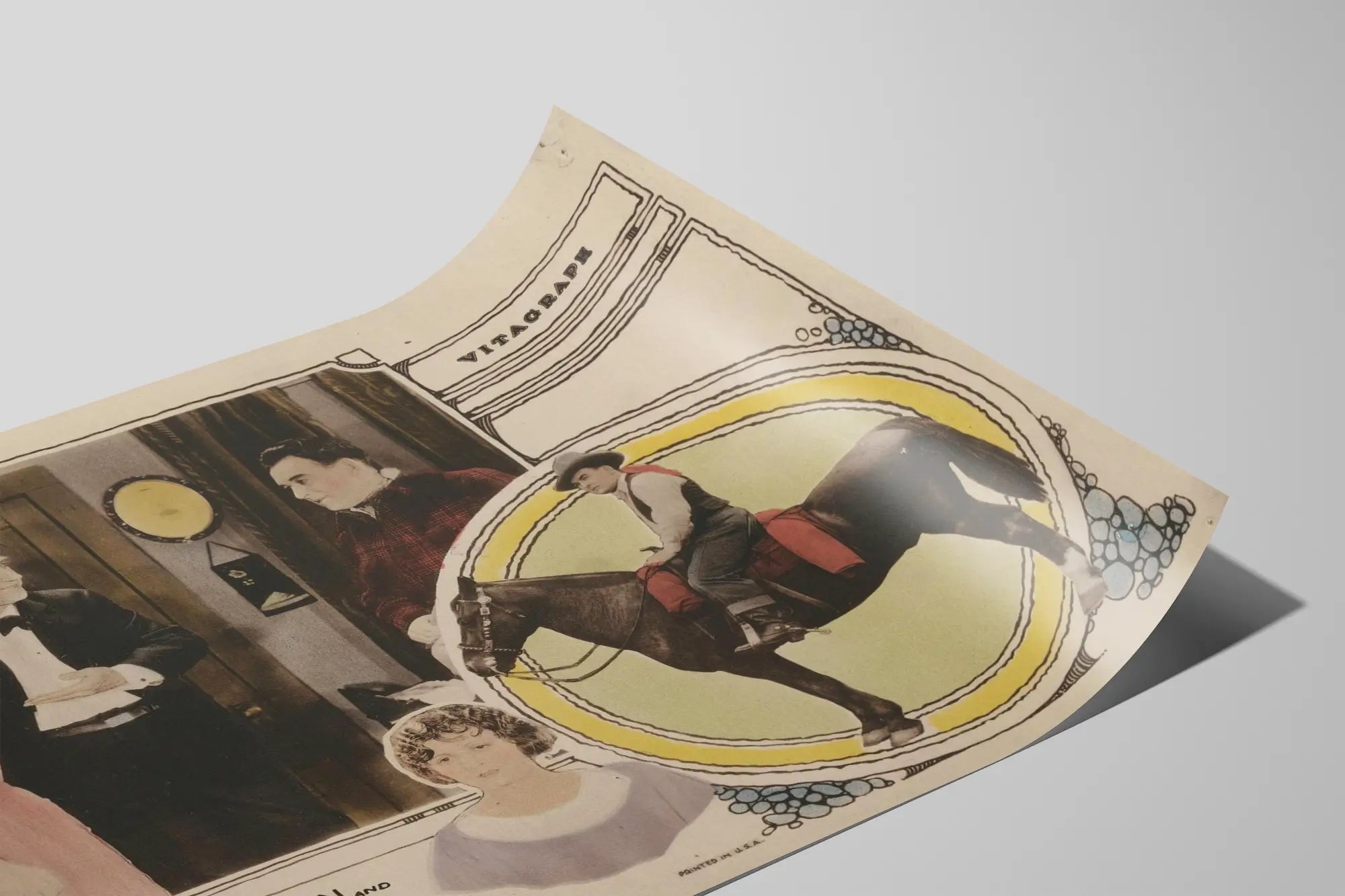 Kompositionen av denna affisch kombinerar ett färgtonat fotografi från början av 1900-talet med en ornamenterad ram som är typisk för gamla filmaffischer. Detaljer som dekorativa kanter och pastellfärger ger denna tavla en äkta känsla som passar utmärkt i en väggdekoration som återspeglar amerikansk filmhistoria. Texten "William Duncan och Edith Johnson i Playing It Wild" tydliggör filmens titel och huvudskådespelarna, vilket förstärker samlarobjektets värde.