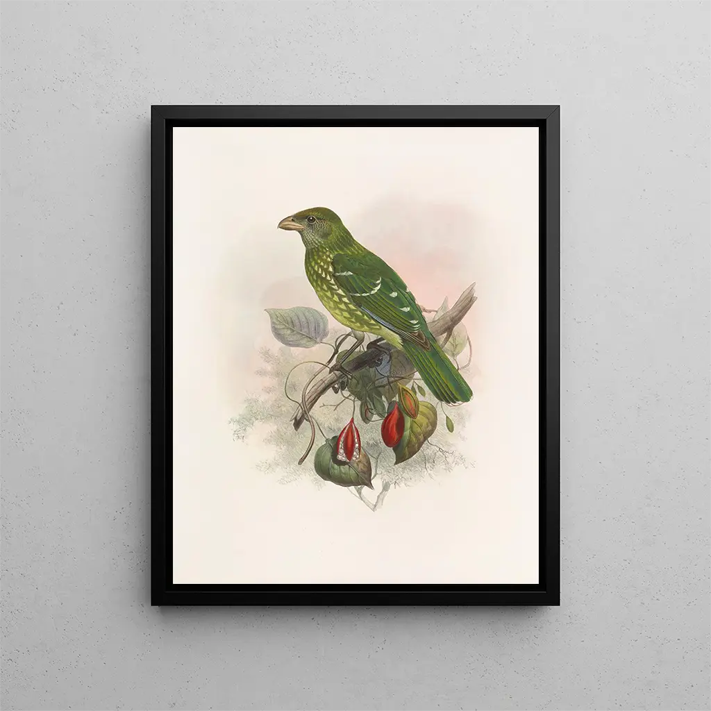 I den fascinerande världen av naturalistisk konst utmärker sig "Ailuroedus crassirostris" av Daniel Giraud Elliot genom sin livfulla och detaljerade skildring av en ovanlig fågel. Detta verk, skapat i slutet av 1800-talet, vittnar om en tid då vetenskaplig utforskning och konst gick hand i hand för att fånga naturens skönhet. Elliot, en framstående ornitolog och konstnär, har lyckats förvandla denna fågel med skimrande nyanser till ett konstnärligt mästerverk, vilket ger konst- och naturälskare ett fönster mot en ofta okänd värld. Konsttrycket av detta ikoniska verk möjliggör en ny upptäckt av den naturalistiska konstens excellens samtidigt som det hyllar fågelfaunan.