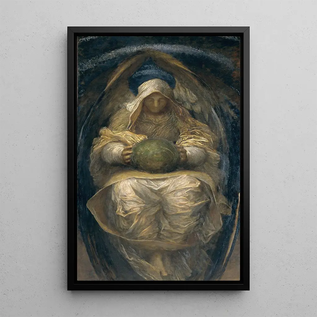 " L'Omniprésent" av George Frederic Watts är ett konsttryck som inbjuder till en djup reflektion över dualiteten i den mänskliga tillvaron. Kompositionen, rik på symbolism, ställer ljus- och mörkelement mot varandra och skildrar kampen mellan gott och ont. De mörka färgerna, blandade med ljusa ljusglimtar, skapar en atmosfär som är både oroande och fängslande. Watts teknik, som använder dynamiska penseldrag, förstärker den emotionella intensiteten i denna målning och fördjupar betraktarens meditation över den mänskliga tillståndet.