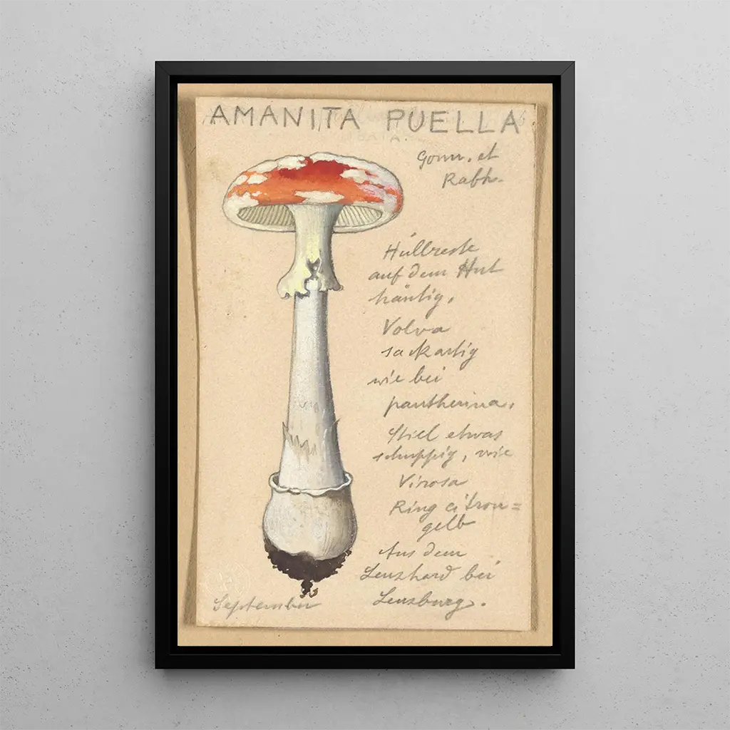 Konsttrycket av "Amanite puella" är ett perfekt val för att försköna ditt hem, oavsett om det är ett vardagsrum, ett kontor eller ett sovrum. Dess utskriftskvalitet garanterar en exceptionell trohet mot nyanser och detaljer i det ursprungliga verket, vilket gör att du kan njuta fullt ut av dess charm. Med sin delikata estetik tillför detta konsttryck en känsla av lugn och elegans till din inredning. Genom att välja detta konsttryck, väljer du en tavla som inte bara förskönar din omgivning, utan också väcker samtal och reflektioner om naturens skönhet.