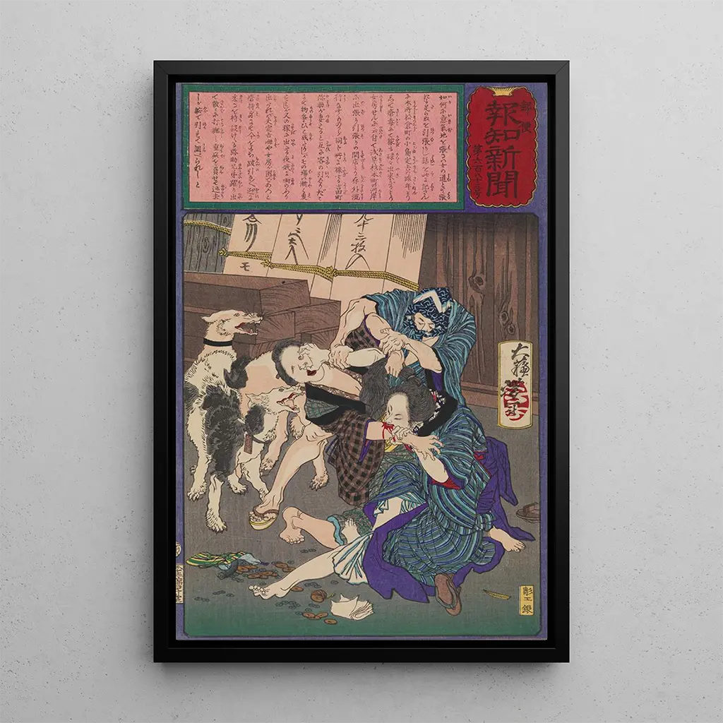 La konsttryck av tableauet Prostituées amateurs se battant pour un client av Tsukioka Yoshitoshi fångar en dynamisk scen och känslomässigt laddad. De livfulla färgerna och de uttrycksfulla rörelserna hos figurerna vittnar om konstnärens skicklighet inom ukiyo-e-tryckkonsten. Detta verk, både provocerande och gripande, illustrerar spänningarna i det urbana livet under Edo-perioden, där mänskliga relationer ofta präglades av kamp och överlevnad. Yoshitoshis teknik, med sina noggranna detaljer och slående kontraster, skapar en påtaglig atmosfär och fördjupar betraktarens förståelse för denna komplexa verklighet.