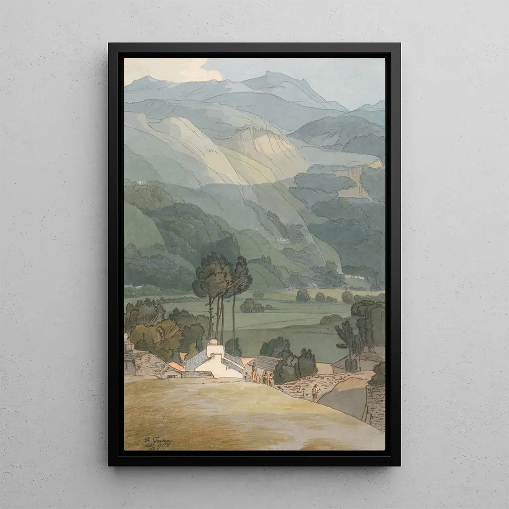 Ambleside : en harmoni mellan natur och arkitektur L'œuvre "Ambleside" av Francis Towne fördjupar oss i ett lugnt landskap där natur och arkitektur möts med elegans. De mjuka pastellfärgerna, som blandar nyanser av grönt, blått och jordfärger, skapar en lugnande atmosfär. Akvarelltekniken, så karakteristisk för Towne, möjliggör en flytande formgivning och en lätthet som påminner om den milda brisen vid engelska sjöar. Den skickligt balanserade kompositionen, med naturliga element som omger byggnader, inbjuder till en stillsam reflektion, som om man själv befinner sig vid sjöns strand. Francis Towne : en pionjär inom romantiskt landskap Francis Towne, verksam på 1700-talet, anses ofta vara en pionjär inom romantiskt landskap i Storbritannien. Påverkad av mästarna inom akvarell och italienska landskap, utvecklar han en unik stil som förenar precision och känsla. Hans resor genom England och Italien när inspirationen, vilket gör att han kan fånga skönheten i landskapen med en sällsynt känslighet. Även om han är mindre känd än sina samtida, har hans arbete haft ett betydande inflytande på efterföljande generationer av landskapsmålare, vilket gör honom till en viktig figur i utvecklingen av landskapskonsten. En dekorativ förvärvning med många fördelar Konsttrycket "Ambleside" är ett dekorativt föremål som passar perfekt i olika utrymmen, vare sig det är ett vardagsrum, ett kontor eller ett sovrum. Dess utskriftskvalitet garanterar trohet mot nyanser och detaljer i originalverket, vilket möjliggör ett fullständigt uppskattande av vävens skönhet. Med sitt estetiska tilltal ger detta konsttryck en känsla av lugn och sofistikering till ditt hem, samtidigt som det väcker minnet av de engelska landskapen. Ge dig själv en bit av naturen och historien med detta tidlösa konsttryck.