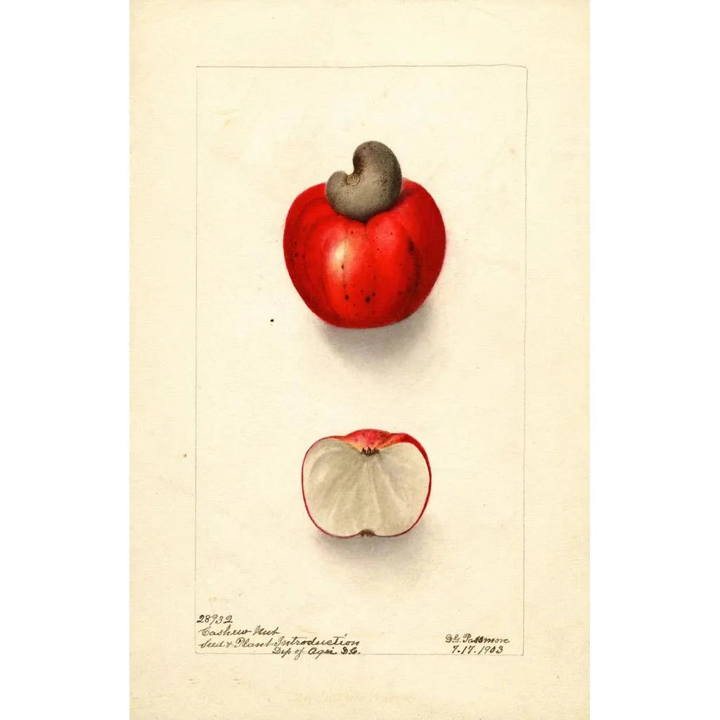 Deborah Griscom Passmore, amerikansk konstnär från 1800-talet, är erkänd för sina bidrag till botanisk konst. Utbildad vid Pennsylvania Academy of the Fine Arts, påverkades hon av Arts and Crafts-rörelsen, som förespråkade harmoni mellan konst och natur. Passmore lyckades kombinera sin kärlek till botanik med sitt konstnärliga talang, och skapade verk som är både vetenskapliga och estetiska. "Anacardium occidentale" är ett verk från en tid då studiet av växter var i full blom, och hennes arbete bidrog till att öka allmänhetens medvetenhet om den naturliga världens skönhet.