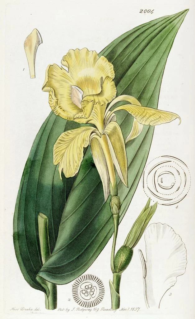 Sydenham Edwards, botanisk illustratör från början av 1800-talet, präglade sin tid med sin unika metod som kombinerade vetenskaplig noggrannhet och konstnärlig känslighet. Hans verk, inklusive Balisier, speglar hans intresse för tropisk flora och hans önskan att introducera mindre kända arter för allmänheten. Genom samarbete med botaniker bidrog han till att utveckla botanisk kunskap samtidigt som han höjde illustration till en konstnärlig nivå. Edwards har därmed blivit en ikonisk figur inom botanisk konst, som förenar passion för naturen med kreativ talang.