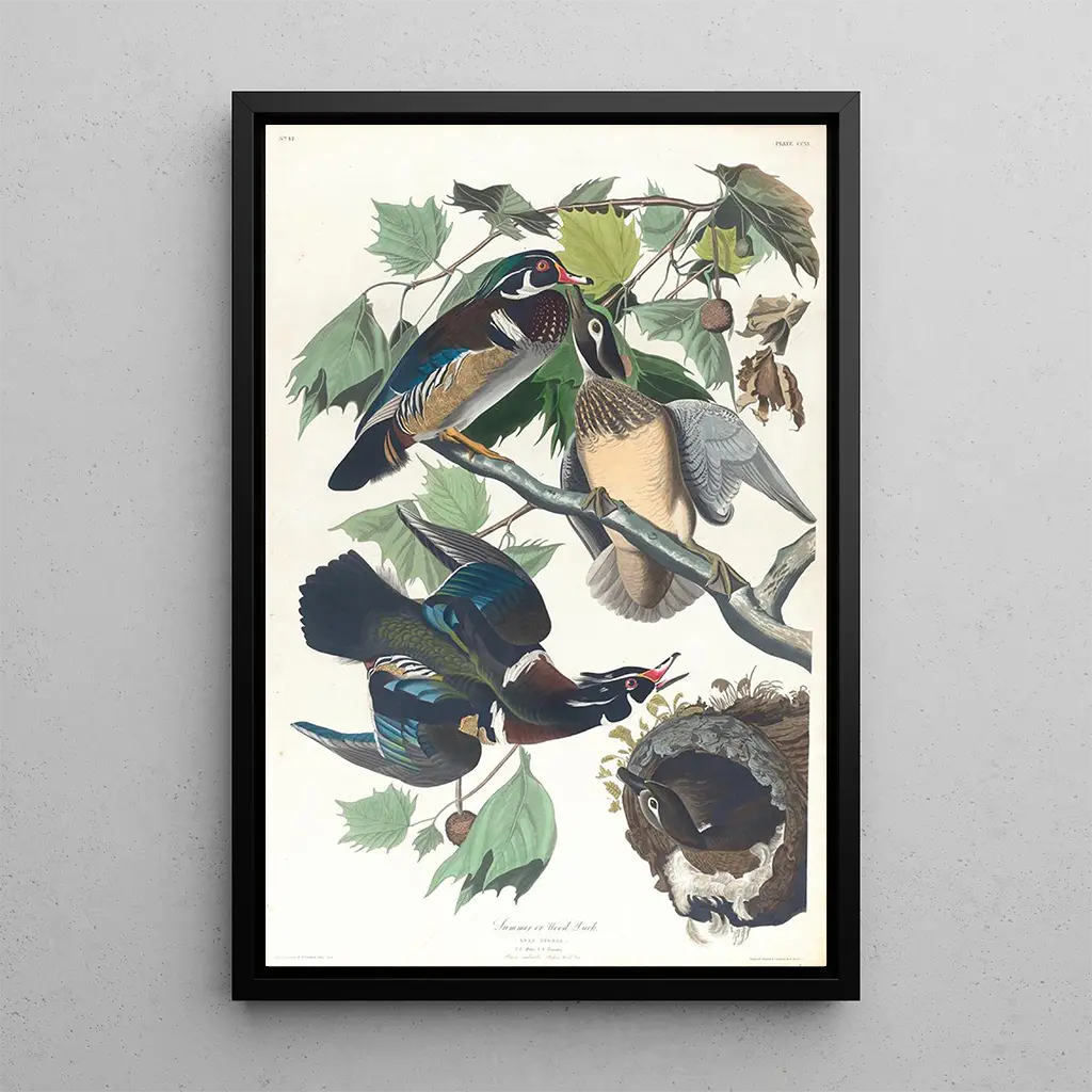 "Canard d'été ou canard branchu" är ett ikoniskt konsttryck av John James Audubon som väcker tankar om lugnet i vattenmiljöer. Med en palett av mjuka och harmoniska färger fångar detta konsttryck skönheten hos denna fågel i dess naturliga habitat. Nyanser av grönt, blått och brunt blandas för att skapa en fridfull atmosfär, medan detaljerna i fjädrarna och reflektionerna i vattnet tillför en realistisk dimension till scenen. Audubon lyckas förmedla en känsla av lugn och harmoni, vilket inbjuder betraktaren att fördjupa sig i detta stilla ögonblick.