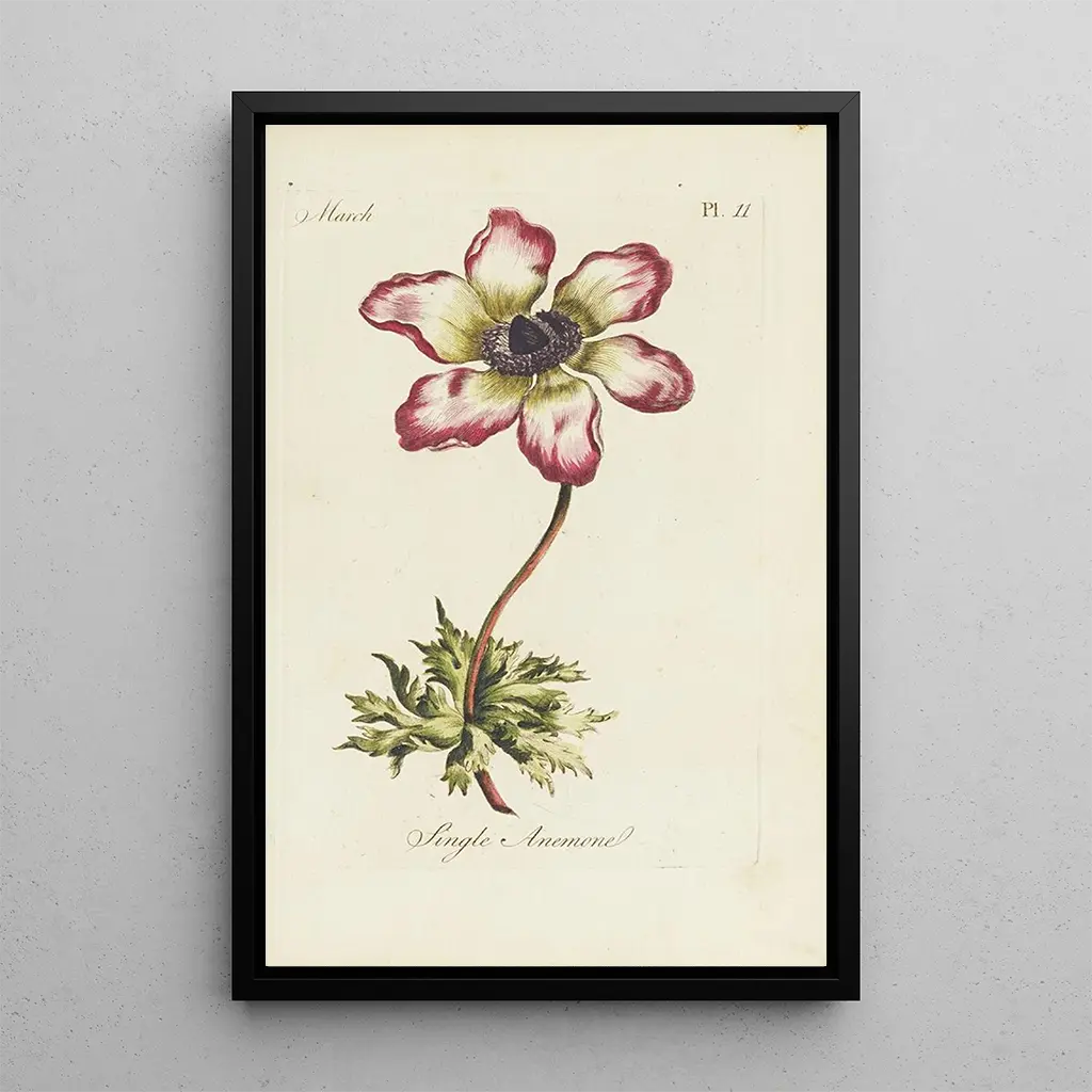 Konsttrycket "Anemon enkel" är ett perfekt dekorativt val för olika utrymmen som vardagsrummet, kontoret eller sovrummet. Dess utskriftskvalitet och trohet mot det ursprungliga verket av Carington Bowles gör det till ett förfinat konstnärligt element som fångar blickar. Denna tavla, med sina mjuka färger och blomtema, tillför en naturkänsla till ditt hem och skapar en varm och välkomnande atmosfär. Genom att välja denna canvas, får du ett stycke som inte bara förskönar din inredning, utan också väcker tankar om blommornas flyktiga skönhet och tillför en poetisk ton till din vardag.