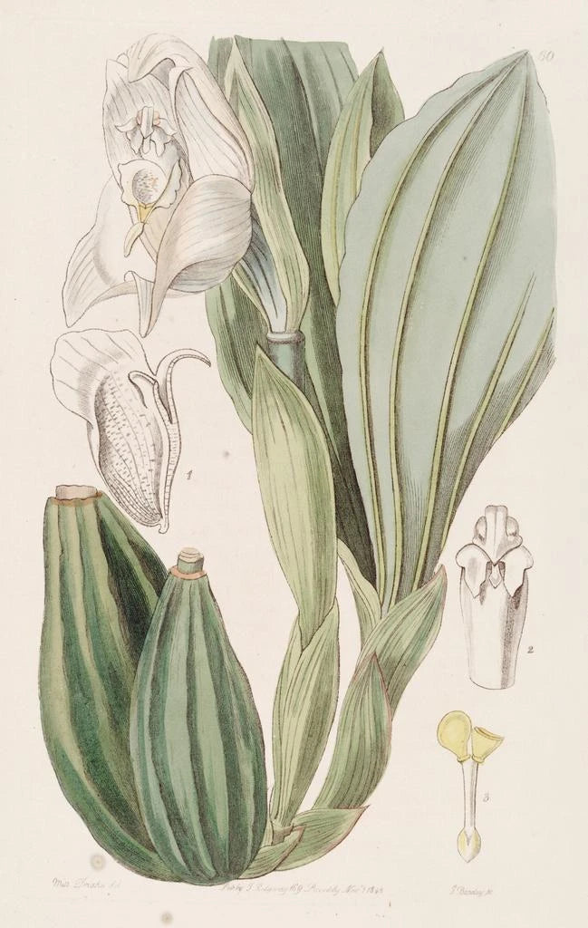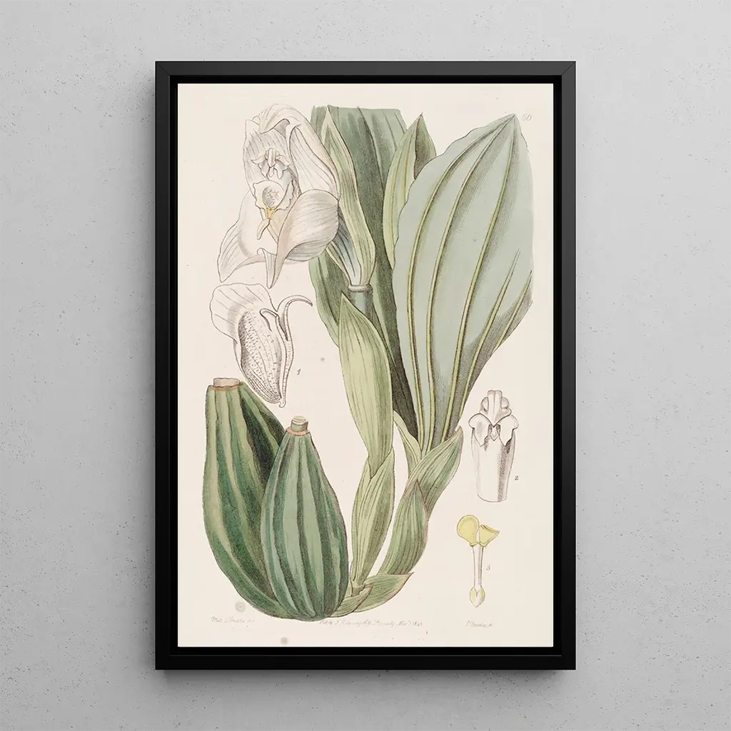 Sydenham Edwards, illustrateur botanique du XIXe siècle, a marqué son époque par ses œuvres alliant rigueur scientifique et sensibilité artistique. Son travail sur l'Anguloa à une fleur s'inscrit dans une tradition d'illustration florale qui cherche à immortaliser la beauté éphémère des plantes. Influencé par les découvertes botaniques de son temps, Edwards a collaboré avec des botanistes pour créer des œuvres qui sont devenues des références dans le domaine. Son héritage perdure, inspirant les passionnés de botanique et d'art à apprécier la richesse de la flore.