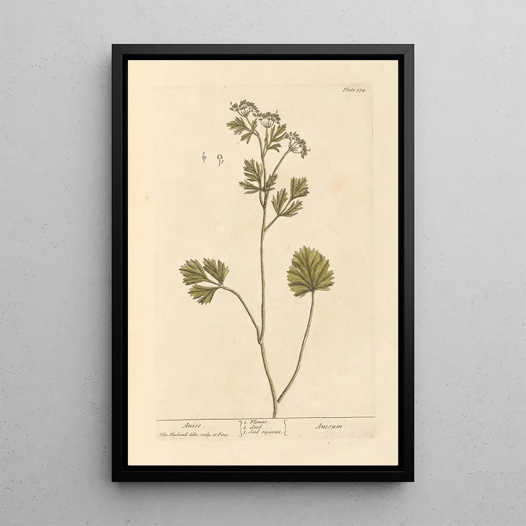 Anis : en sensorisk utforskning av smaker La konsttryck Anis av Elizabeth Blackwell är en fängslande skildring av denna aromatiska växt, känd för sina medicinska och kulinariska egenskaper. Nyanser av grönt och brunt, kombinerat med inslag av vitt, skapar en varm och inbjudande atmosfär. Akvarelltekniken, använd med fin precision, framhäver de delikata detaljerna i blad och blommor, samtidigt som den förmedlar en känsla av friskhet. Detta konsttryck av Anis bjuder in betraktaren till en sensorisk upptäcktsresa, där den visuella skönheten blandas med de förföriska aromerna av denna växt. Elizabeth Blackwell : en pionjär inom botanisk konst Elizabeth Blackwell, född 1707, är erkänd som en av de första kvinnliga illustratörerna av botaniska motiv i sin tid. Hennes verk, präglat av vetenskaplig noggrannhet och ett skarpt konstnärligt sinne, spelade en avgörande roll i spridningen av botanisk kunskap under 1700-talet. Påverkad av tidens framsteg, lyckades hon förena konst och vetenskap, och skapade illustrationer som är både estetiska och informativa. Hennes bok "A Curious Herbal" hyllades för sitt bidrag till botaniken, vilket gör henne till en oumbärlig figur i historien om botanisk illustration. En dekorativ investering med många fördelar La konsttrycket Anis är ett dekorativt föremål som kommer att berika ditt hem på ett elegant sätt. Oavsett om det är i ett vardagsrum, kök eller kontor, tillför detta konsttryck en touch av natur och lugn. Kvaliteten på trycket garanterar trohet mot detaljer och färger i originalverket, vilket säkerställer en varaktig estetisk attraktion. Genom att välja detta konsttryck investerar du i ett verk som inte bara förskönar ditt utrymme, utan också väcker tankar om den växtvärldens rikedomar och dess fördelar.