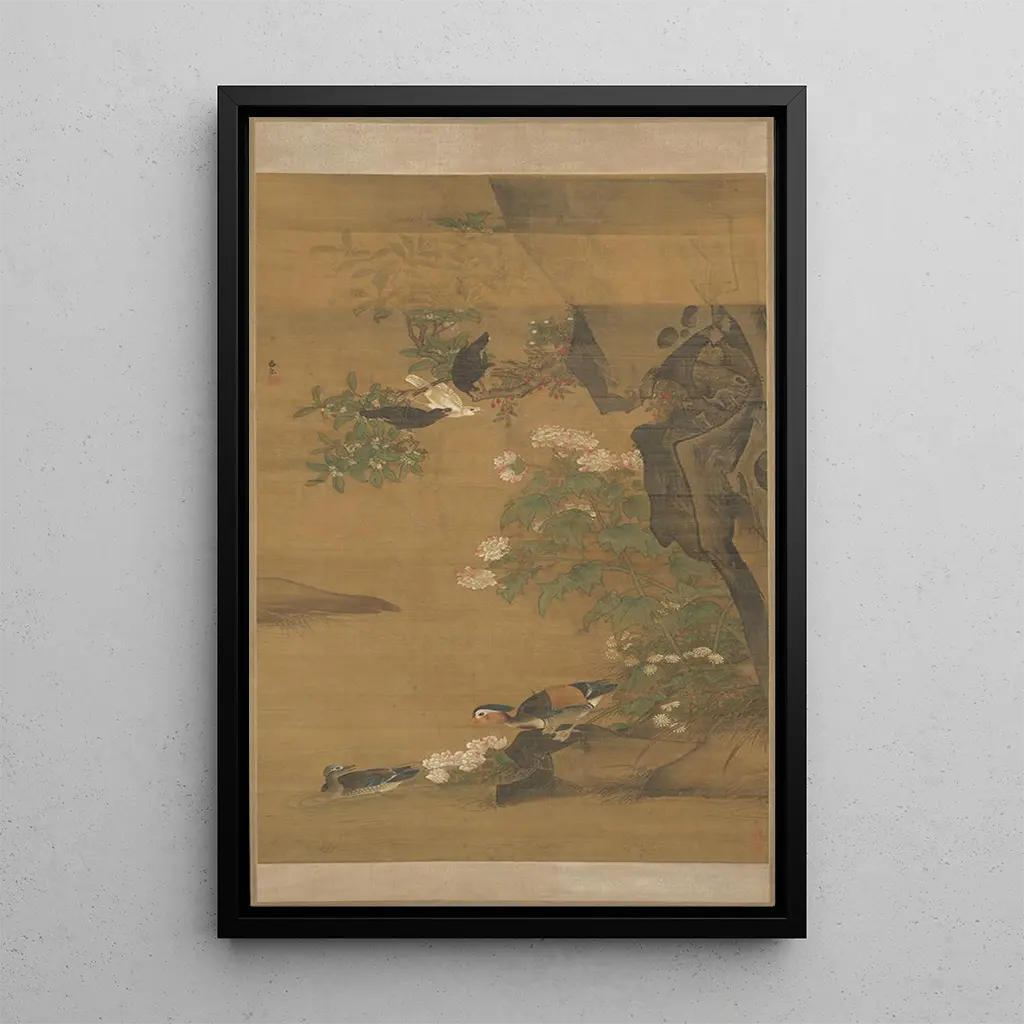Kanadagäss och hibiskus av rosa bomull: ett livfullt konsttryck av naturen Detta konsttryck "Kanadagäss och hibiskus av rosa bomull" är ett verk som inbjuder till drömmar. Gåssarna, med sina glänsande fjädrar, landar försiktigt bland hibiskus i mjuka och varma nyanser. Färgpaletten, som sträcker sig från frodiga gröna till delikata rosa, skapar en lugn och harmonisk atmosfär. Måleritekniken, troligen oljemålning, möjliggör fångst av ljus och texturer med enastående finhet. Varje detalj, från fjädrar till kronblad, känns levande och förflyttar betraktaren till en frodig trädgård där naturen blomstrar. L. Ji: en mästare inom östlig målarkonst L. Ji är en konstnär vars arbete är förankrat i den asiatiska måleritraditionen, som blandar klassiska och samtida influenser. Även om det är få biografiska uppgifter om honom, påminner hans stil om de stora mästarna inom kinesisk målarkonst, där naturen ofta hyllas som en symbol för skönhet och harmoni. Verket "Kanadagäss och hibiskus av rosa bomull" vittnar om detta tillvägagångssätt, och framhäver den rika faunan och floran. Genom sina skapelser bidrar L. Ji till att bevara ett konstnärligt arv som värdesätter förhållandet mellan människa och natur. En dekorativ tillgång med många fördelar Att välja konsttrycket "Kanadagäss och hibiskus av rosa bomull" är ett klokt val för att försköna ditt hem. Oavsett om det är i ett vardagsrum, ett kontor eller ett sovrum, tillför detta konsttryck en känsla av friskhet och elegans. Dess reproduktionskvalitet garanterar trohet mot färger och detaljer i originalverket, samtidigt som det erbjuder en estetisk attraktion. Detta konsttryck blir därmed ett dekorativt element som väcker beundran och inbjuder till eftertanke, och skapar en lugn och välkomnande atmosfär i vilket utrymme som helst.