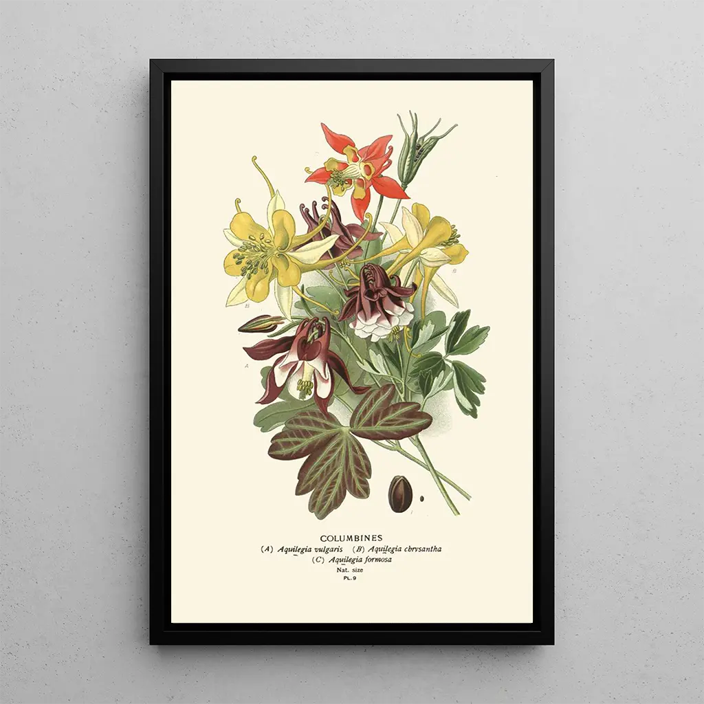 Konsttrycket Ancolies av Edward Step är en hyllning till blommornas grace och lätthet. Ancolies, med sina delikata kronblad och varierande nyanser från blått till lila, verkar nästan sväva över duken. Den harmoniska kompositionen och den subtila användningen av skuggor skapar en djupkänsla som fångar ögat och inbjuder till beundran. Varje detalj är noggrant återgiven, vilket vittnar om Edward Steps talang för att fånga naturens flyktiga skönhet. Detta verk framkallar en fridfull atmosfär, där blommornas skönhet blir en källa till inspiration och eftertanke.