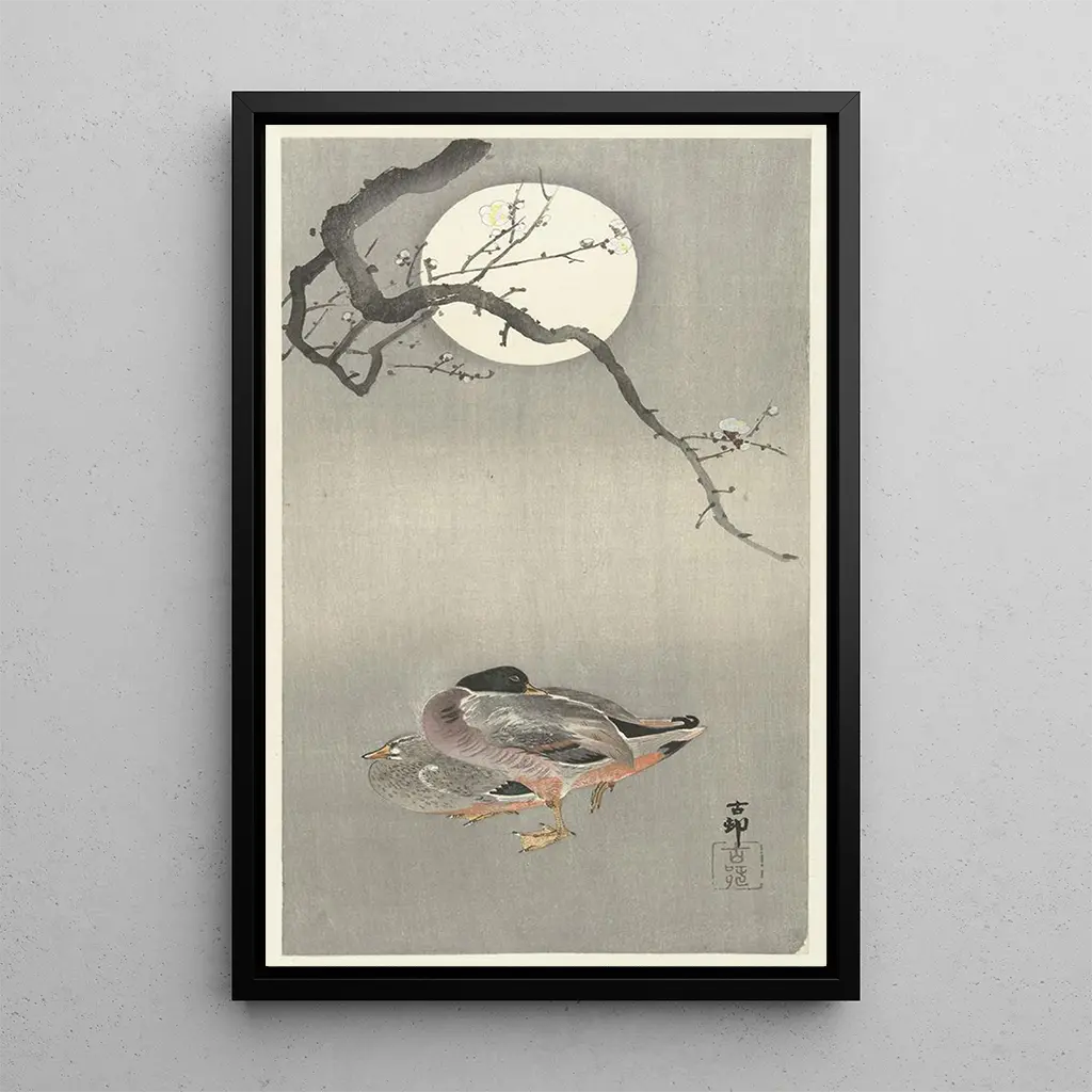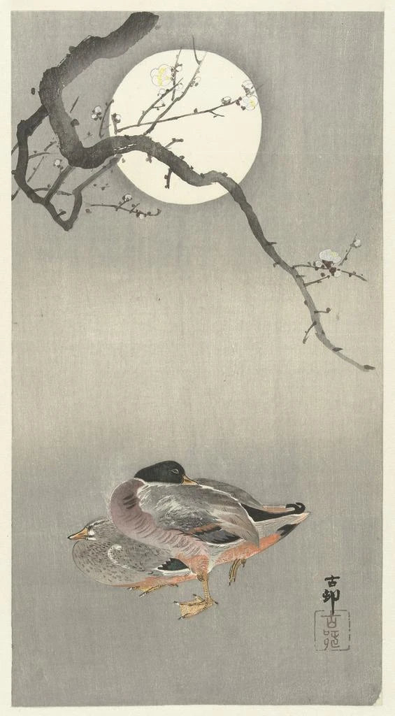 Ohara Koson, verksam under Taisho-perioden (1912–1926), är erkänd för sina verk som hyllar naturen och vardagslivet. Påverkad av ukiyo-e-traditioner, har han lyckats förena gamla tekniker med modern känsla, och utmärker sig genom sin subtila användning av färger och motiv. Koson har ofta avbildat fåglar och blommor, och fångat deras essens med poetisk precision. Hans arbete, även om det är mindre känt än hans samtida, spelar en avgörande roll i bevarandet av japansk konst. Konsttrycket av "Kanadagässor vid fullmåne" vittnar om hans talang och engagemang för den naturliga skönheten.