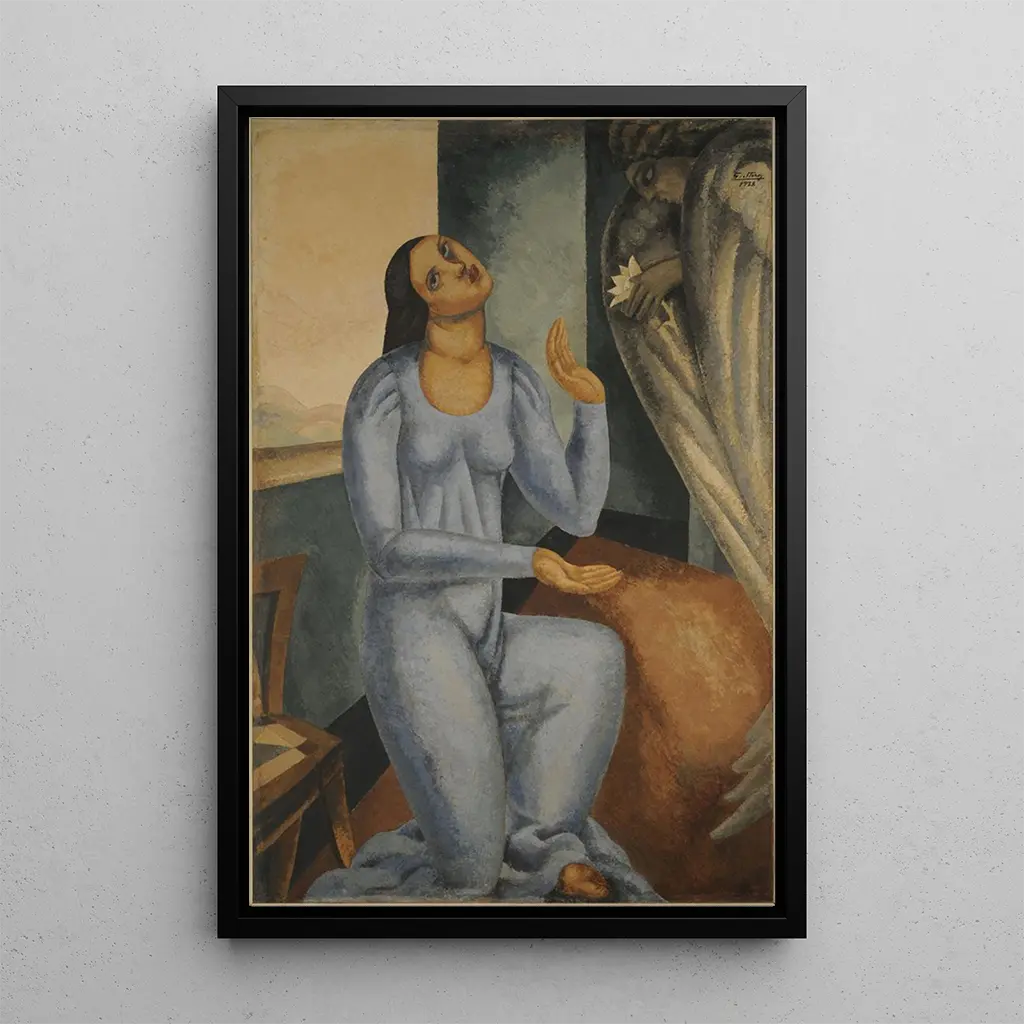 L'Annonciation av Alfredo Guttero är ett konsttryck som fångar det heliga ögonblicket då ängeln Gabriel meddelar Jungfru Maria att hon ska föda Guds Son. Kompositionen kännetecknas av mjuka och ljusa färger, vilket skapar en atmosfär av lugn och mystik. Figurerna är varsamt stiliserade, och ljuset tycks emanera från själva scenen, omsluta karaktärerna i en gudomlig aura. Guttero använder måleritekniker som blandar realism och abstraktion, vilket gör verket både tillgängligt och djupt andligt. Detta konsttryck inbjuder till eftertanke och reflektion över tro och gudomlig försyn.